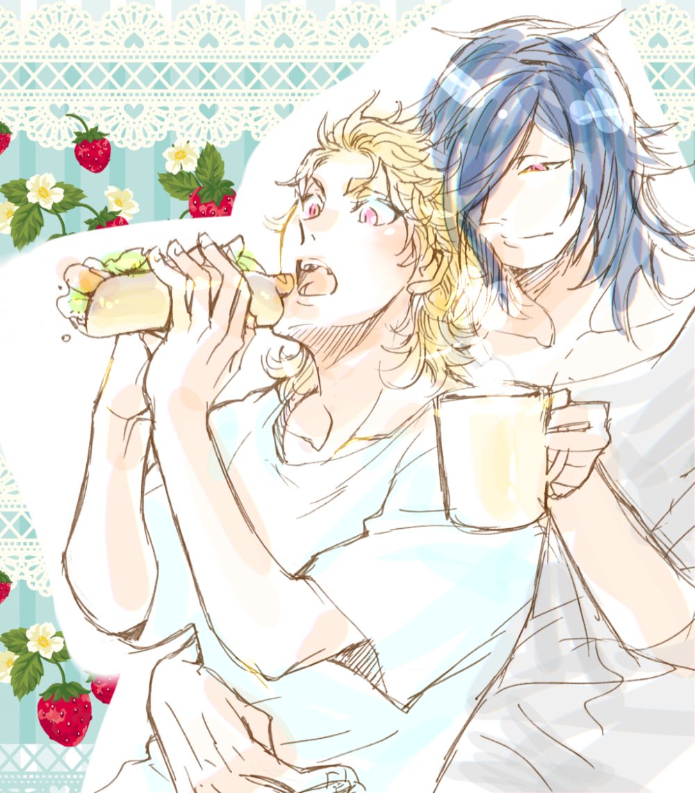 2 14 三池落書き 現パロ兄弟の休日ごはんは🥓🥩🍔😋🍴💕 「うまい!兄弟!!けっこんしてくれ!!!😄」 「…すでに入籍済みだが🙂」(戸籍的な意味で) 「そうだった!!😆」 がお約束のやり取りな兄弟 それはそれとしてソちゃんが成人したら式は上げるしハネムーンもやるつもりのヨさんである(積立中) 23/06/25 11:33