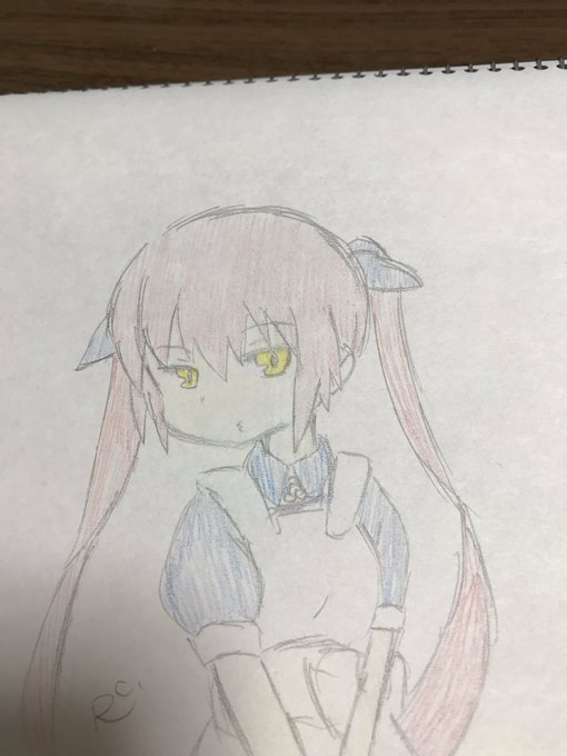 落描きですが、今日買った色鉛筆を使ってリオちゃんを描きましたφ(・ω・*)♪ #おめシス