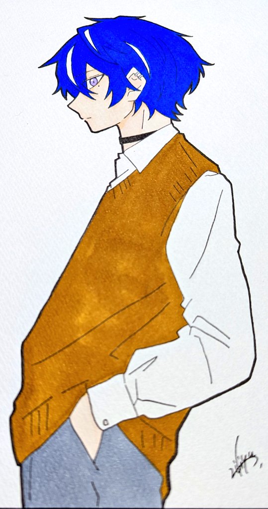 #ごみやーと #紺野和泉 仕事の休憩中に描いたんだけど目線が迷子になった...( ==)