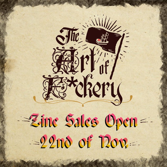 Land ho! The zine has been spotted. We are so excited to announce that The Art of F*ckery Zine will be available for PDF and PDF+physical purchase on November 22nd! Start saving your dubloons! #ofmd #ourflagmeansdeath #ofmdfanart #ofmdzine