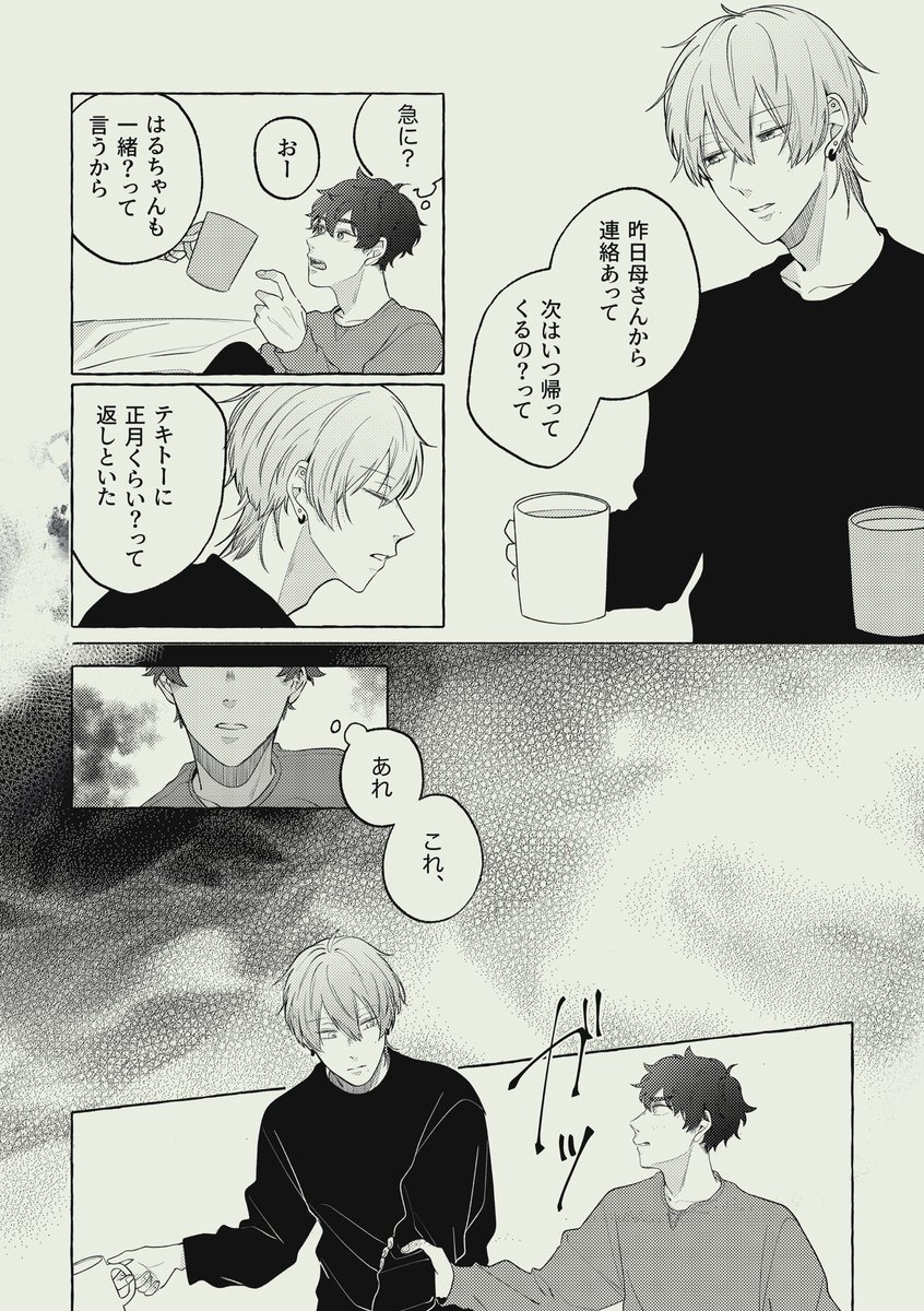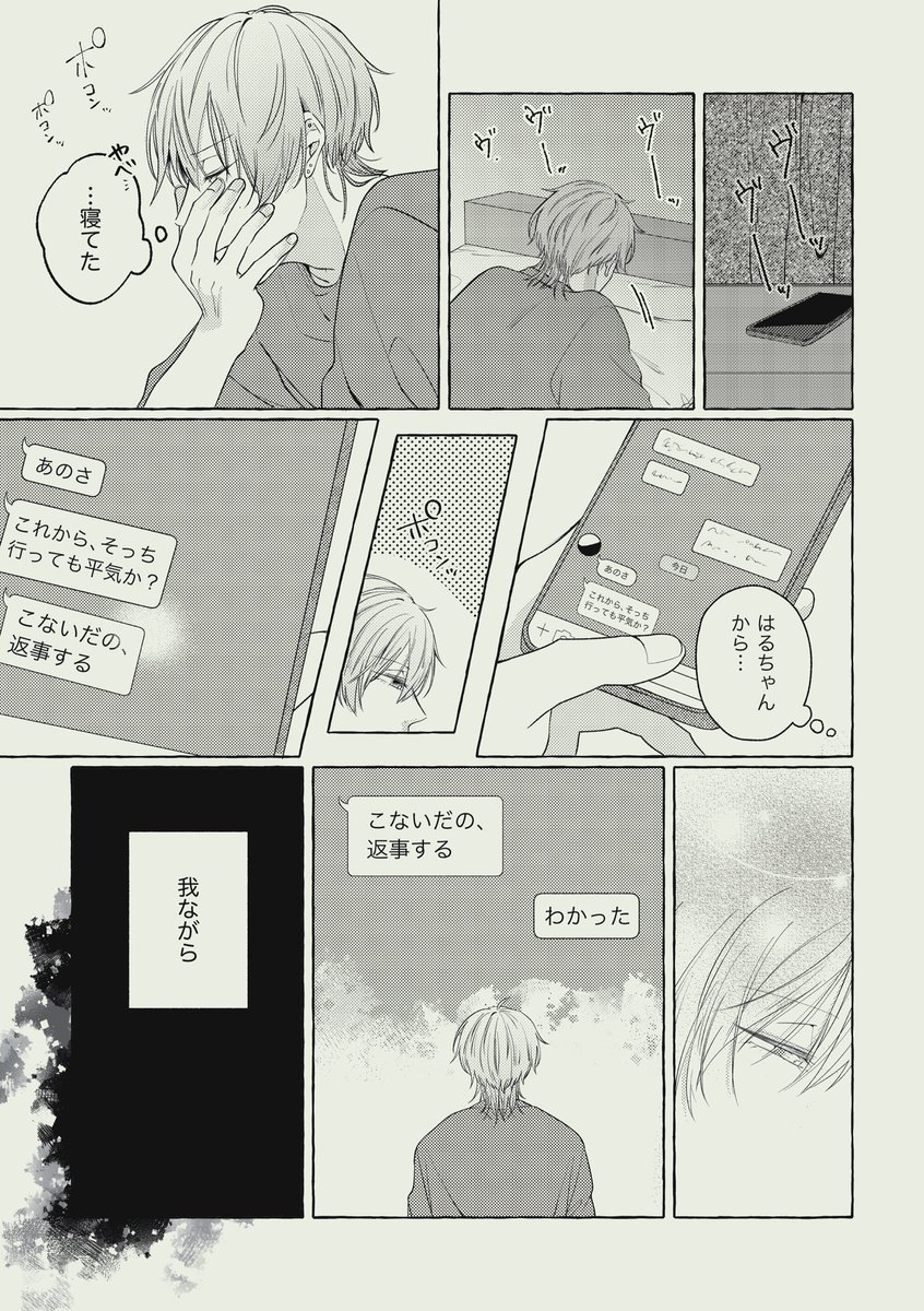 96 2046 「よりによって!」(1/2) 冬樹、誕生日おめでとう。 今年もたくさん甘えて、甘やかしてね。 #創作BL #冬壱 23/04/18 00:01