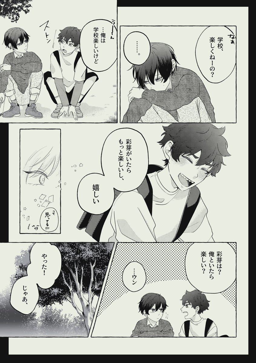 22 412 彩芽が金髪にした理由の話💇 (J庭53にて配布したペーパー漫画です😌✌️) #J庭53 #創作BL #あやはる_bl 23/04/08 22:13