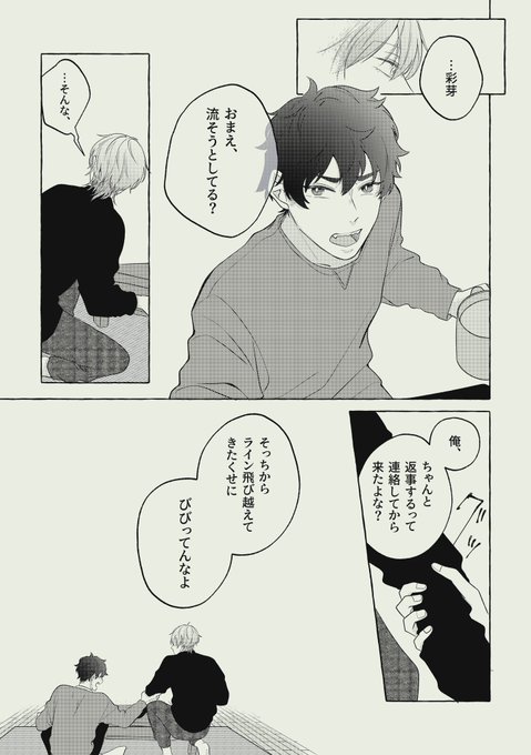 2 4 描き下ろし、暴走する彩芽となんだかんだ流されまくりな春海が見られます。1Pめだけ近日中に公開予定です💪赤面たくさんで楽しい…… #創作BL #あやはる_bl #J庭53 23/03/08 20:57