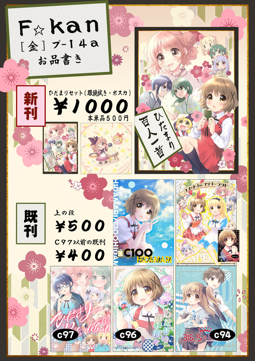 冬コミ1日目参加のF☆kanのお品書きできました! 追記あれば下やハッシュタグ #fkanC101 に書いておきます。 よろしくお願いいたします。