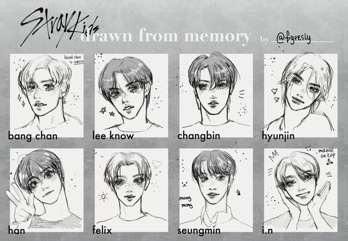 i am veryy late but,, here it iss! skz from memory :> this was way more fun (and harder) than i expected ;; #straykidsfanart