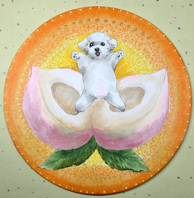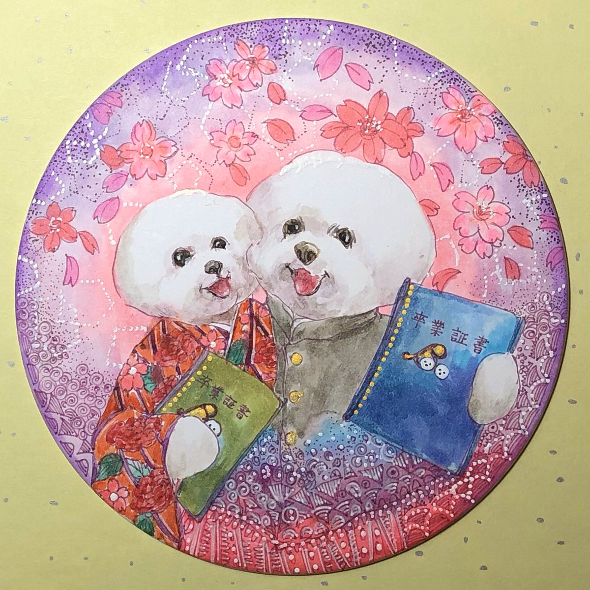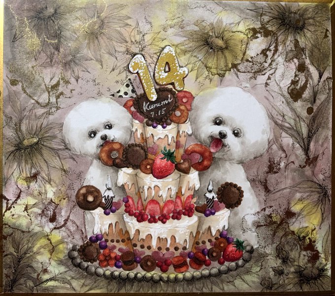 母の日🎶いつもありがとう おばあちゃんにかりんと、くるみから🎂と💐あげるね 義母にあげまーす✌️ #ビションフリーゼ #ビションフリーゼ子犬 #母の日プレゼント #母の日 #mothersday #コピック #copic #ペン画