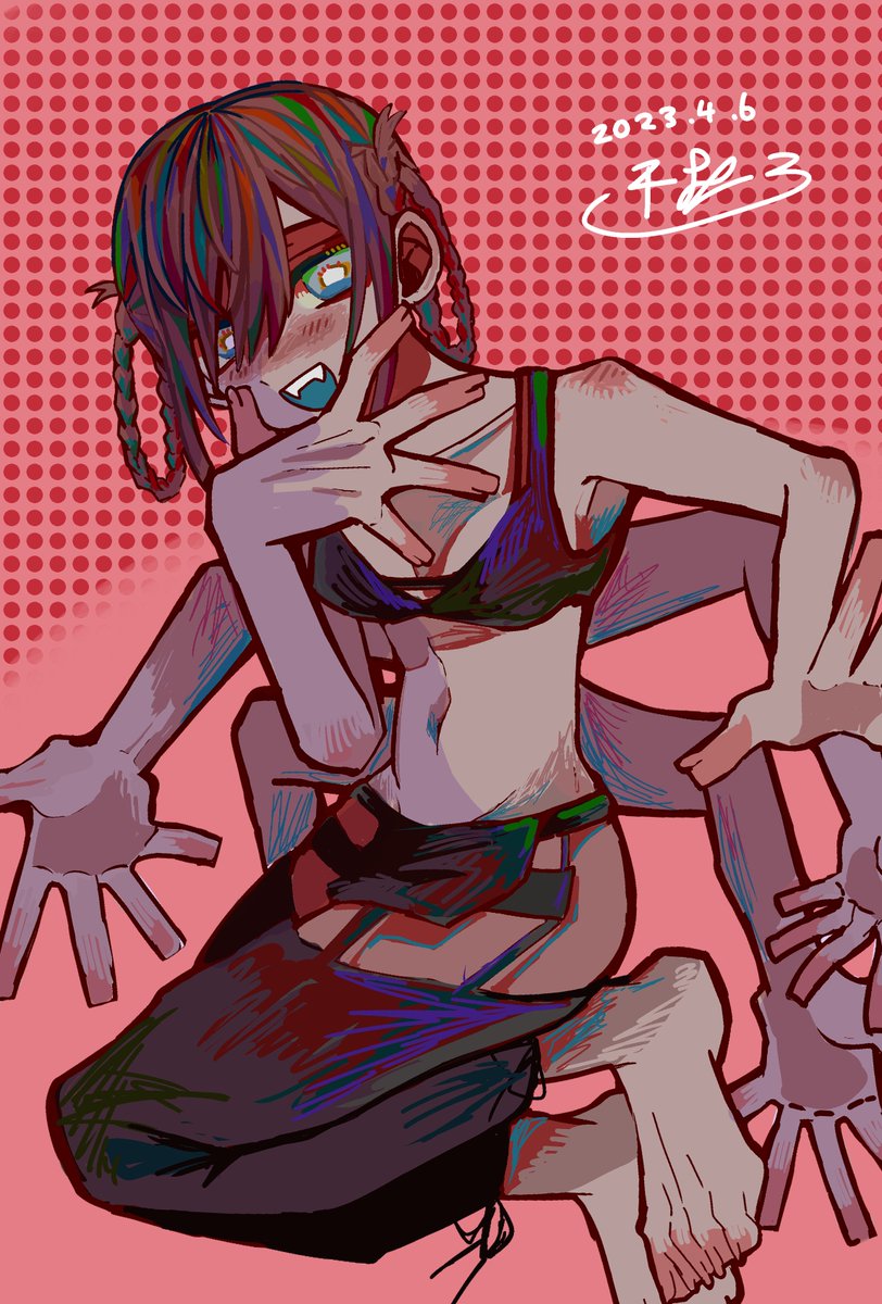 6 14 土蜘蛛ちゃん。色付けただけ(^^ #イラスト #創作 #人外 23/04/06 05:36