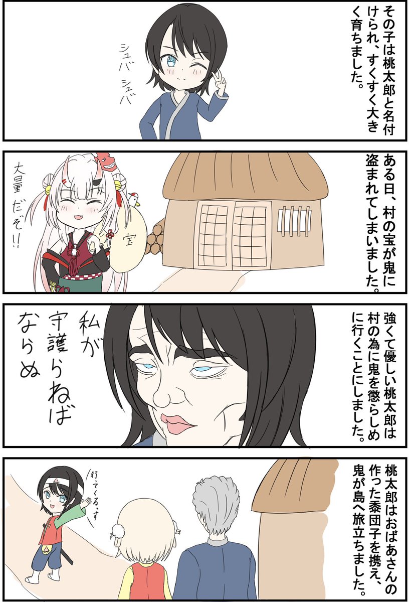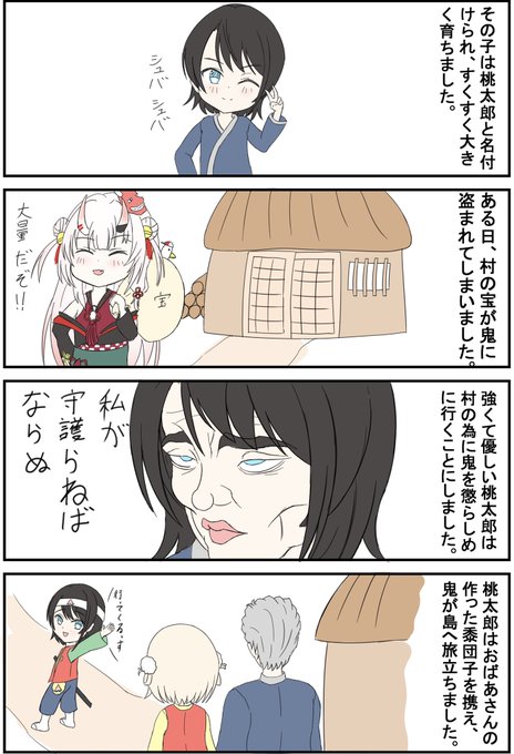 vtuberで分かる昔ばなし 桃太郎③ #プロテインザスバル #できたてころね #祭絵 #絵にっくす