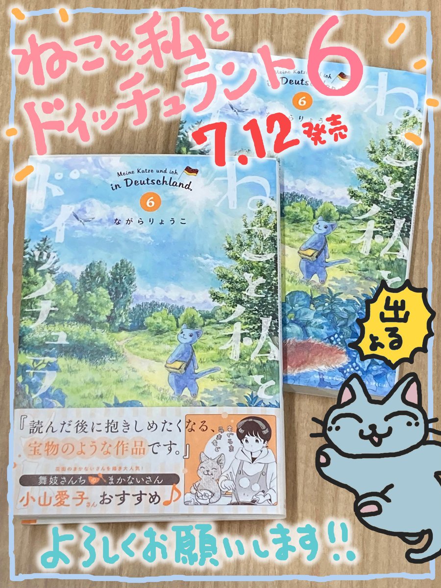 ということで、 #ねこと私とドイッチュラント 6巻、書影が出ました! 今巻は夏のお話が詰まった1冊になっています🍧カバーもリフレッシュ! 7月12日(火)発売です。よろしくお願い致します!