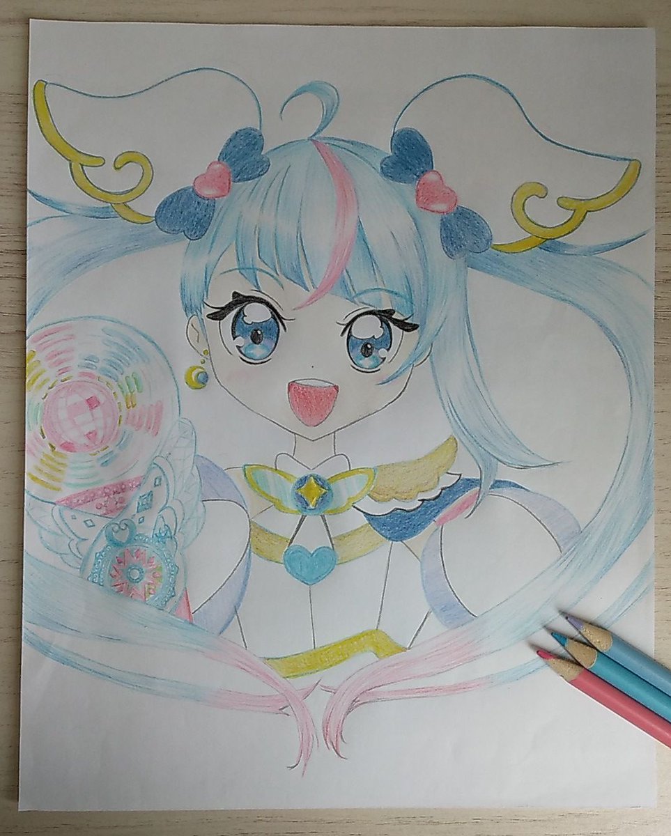15 55 前回、絵を載せたらたくさんの方が見てくださり感謝です。いいね、リツイート、フォローしてくださった方ありがとうございます(^o^) #イラスト練習中 #3歳娘とお絵かき #プリキュア好きさんと繋がりたい #キュアラメール 22/03/22 16:42