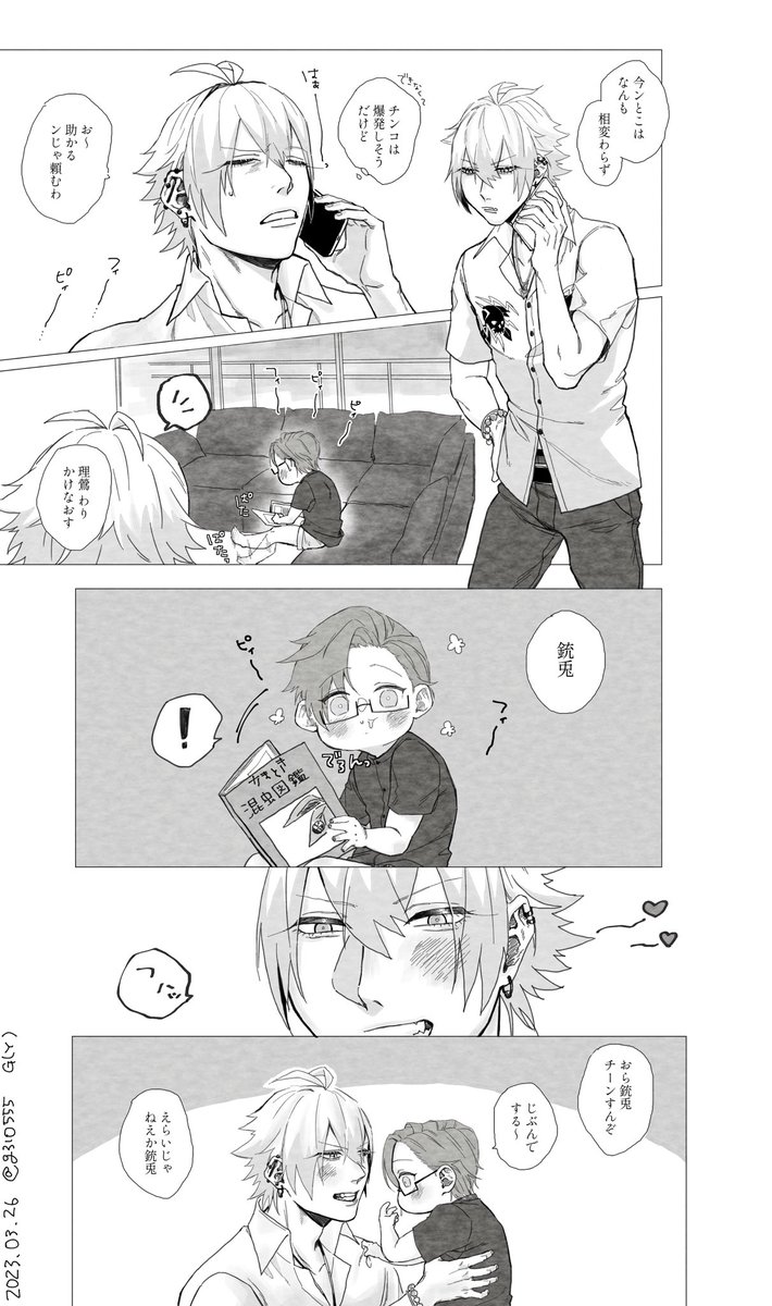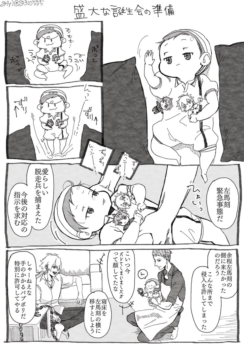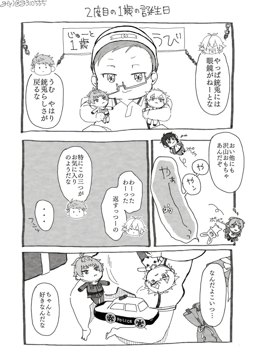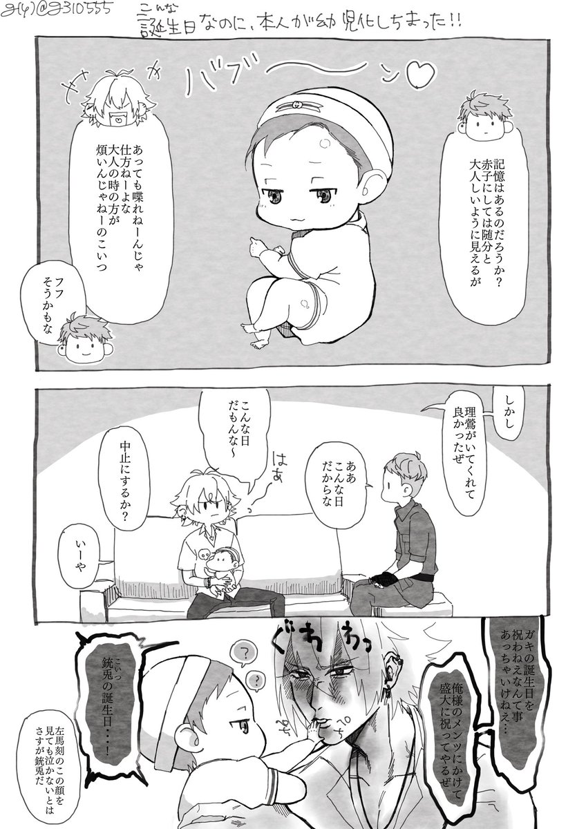 87 510 🐰誕落書きⓂ️✝️↪️漫画 ⚠️幼児化 ⚠️気が遠くなるほど薄っすら左銃 🐰お誕生日おめでとう! 21/05/31 23:20
