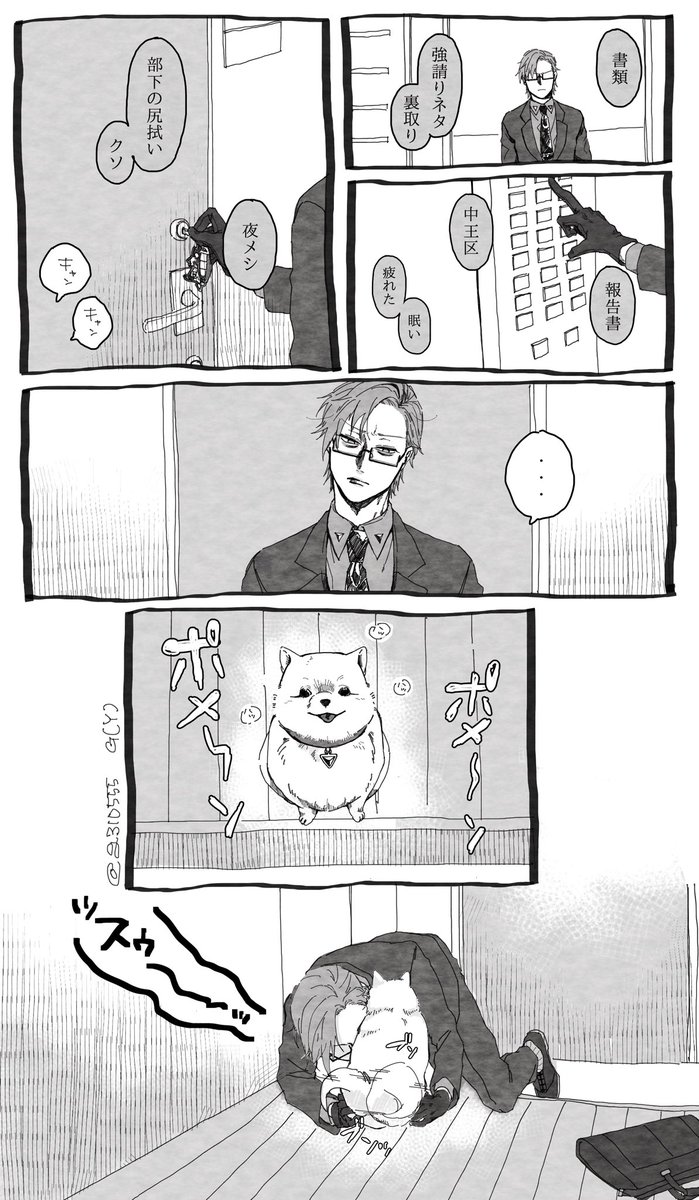 102 693 ただでさえソファで寝落ちることが多かった🐰が、玄関で寝落ちてしまうようなってしまうポメガバ左銃落書き 21/11/14 19:50