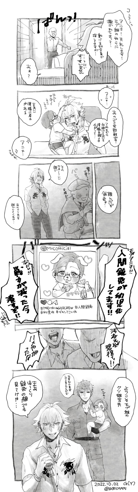 🐰誕落書きⓂ️✝️↪️漫画 ⚠️幼児化 ⚠️気が遠くなるほど薄っすら左銃 🐰お誕生日おめでとう!