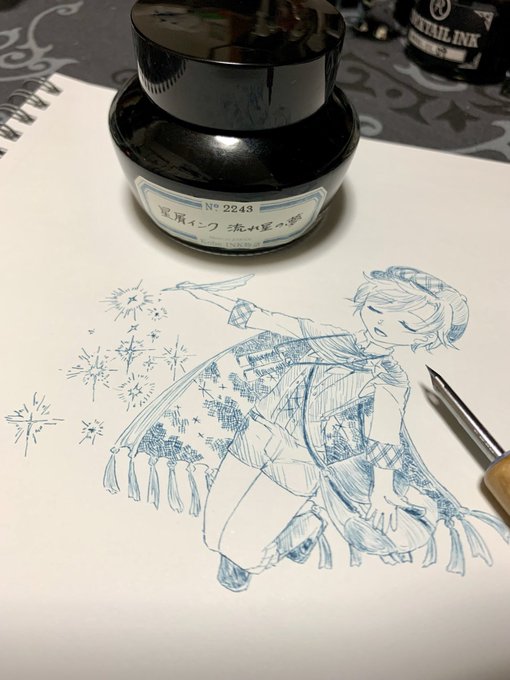 #今月描いた絵を晒そう 一発インクも水彩もちゃんと描いたな