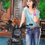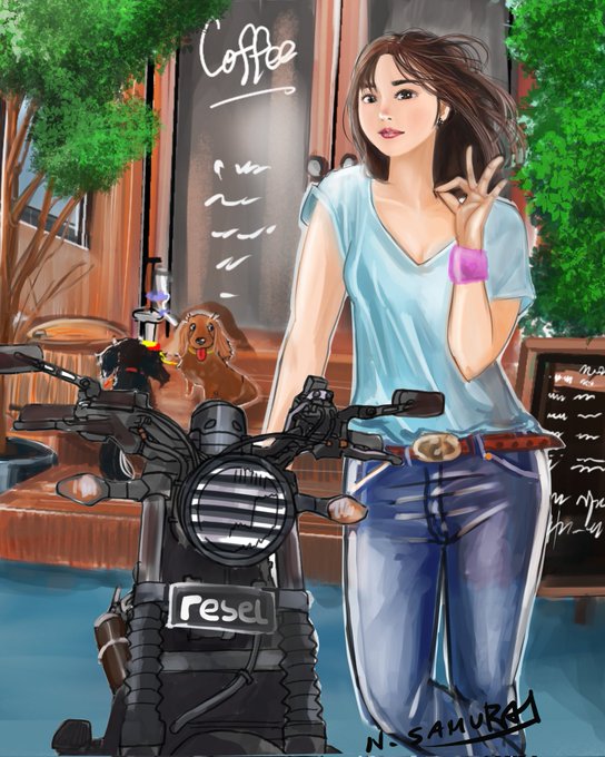 おはよう👋😆✨☀️オリキャラのレブル乗り碧の全身を描きました😃#オリキャラ #バイク女子 #イラスト #絵柄が好みっていう人にフォローされたい #イラスト好きな人と繋がりたい #春の創作クラスタフォロー祭り