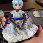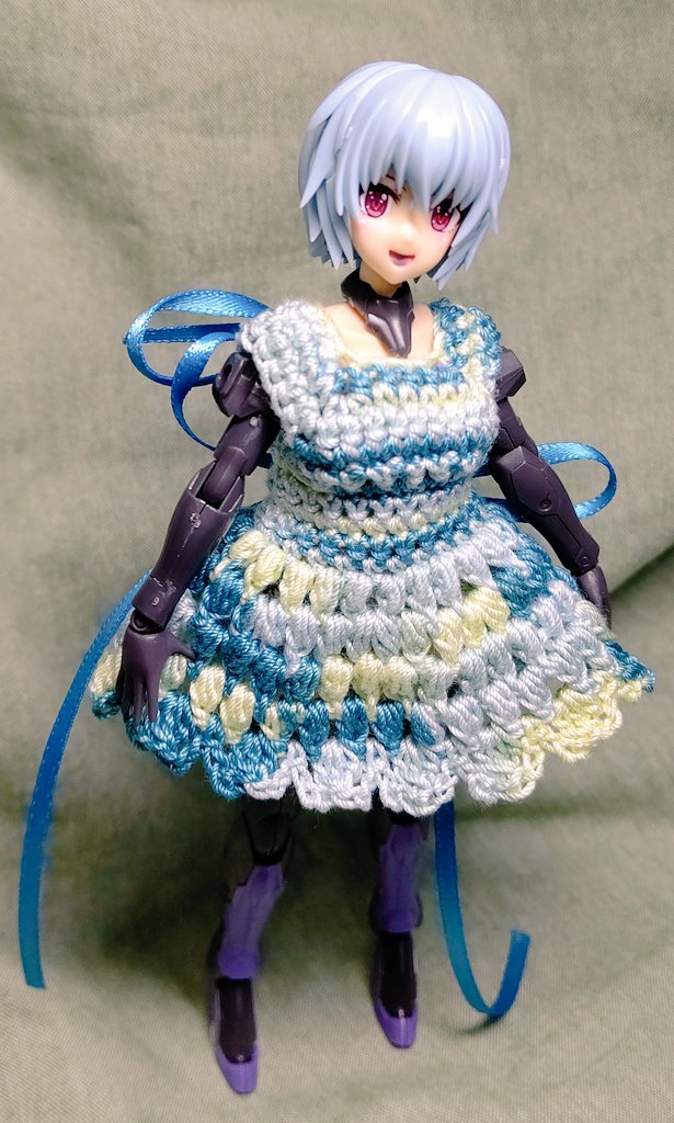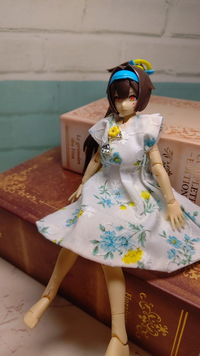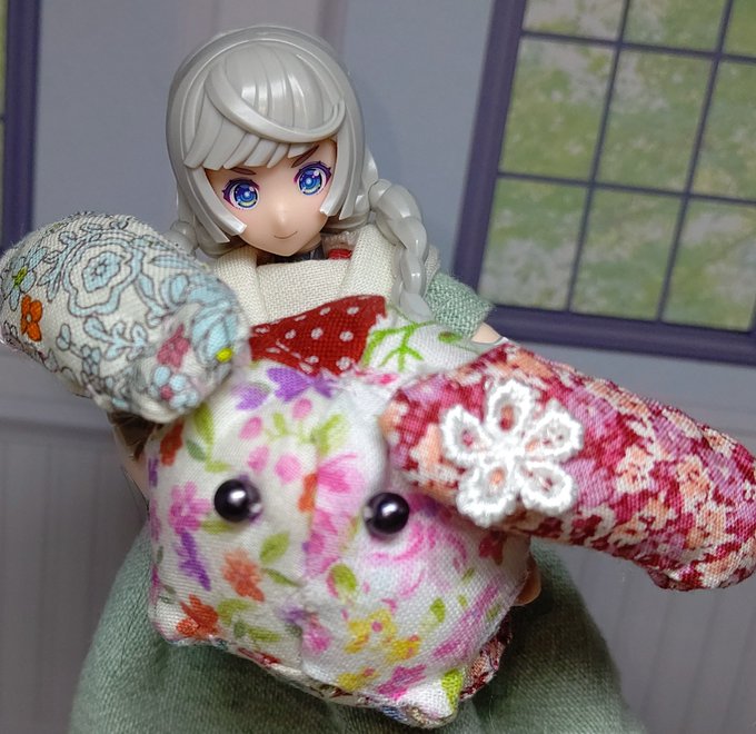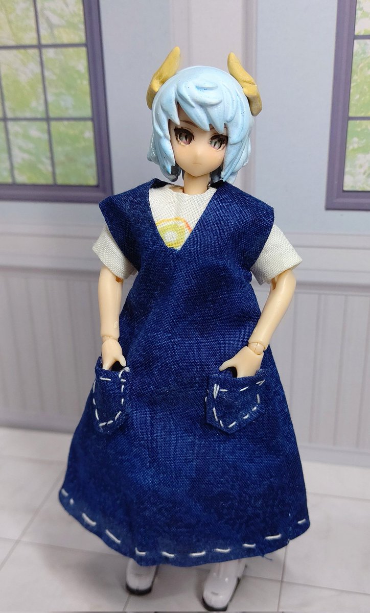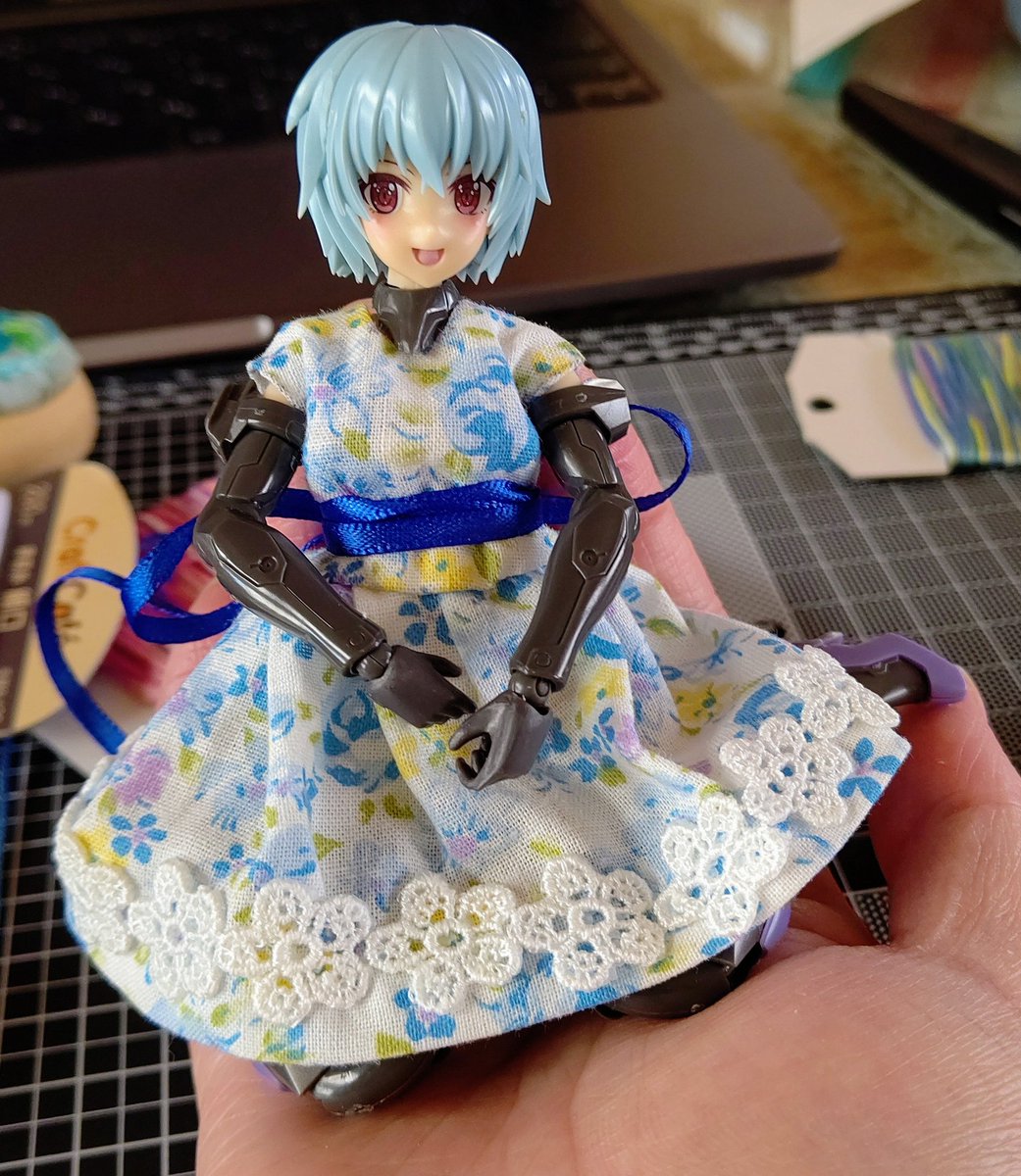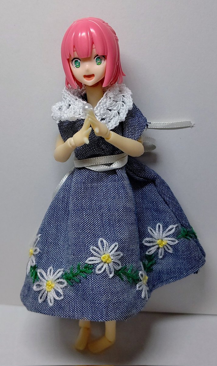 布服、もう一着出来ました♪ 刺繍をしてあります。 ピコニーモmの素体のランサーちゃんには膝下くらいです。 フレズちゃんとランサーちゃんの服の型紙同じなんです。 刺繍と花柄プリント印象ちょっと代わりますよね😆 #フレームアームズ・ガール #メガミデバイス #布服