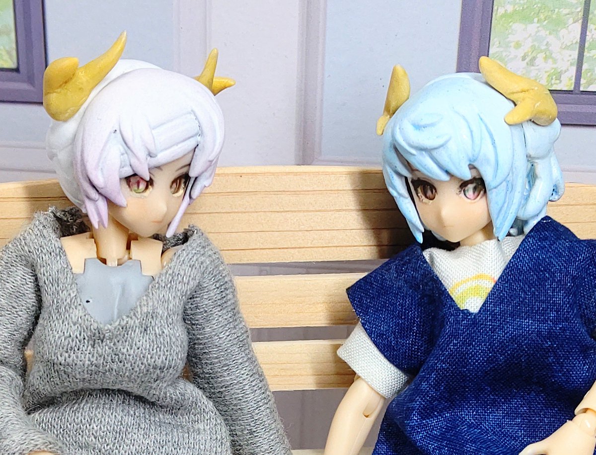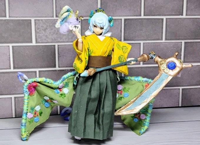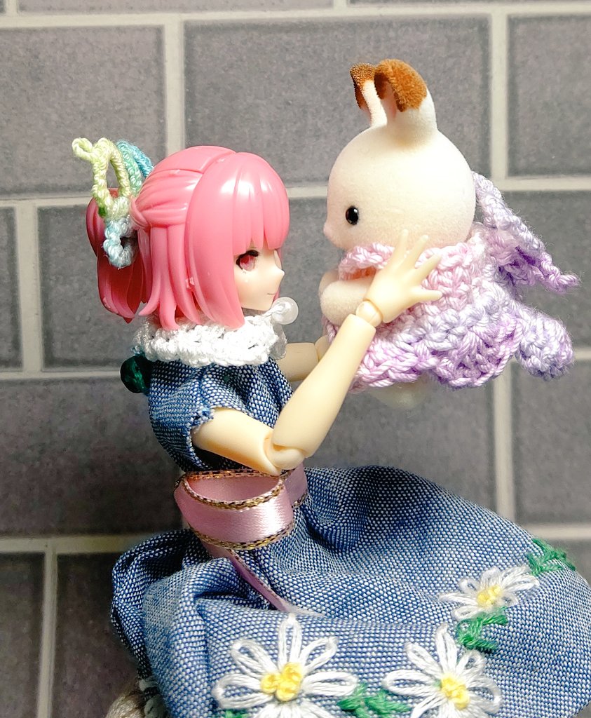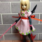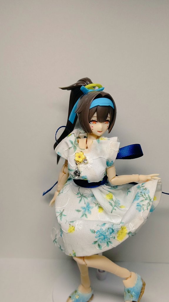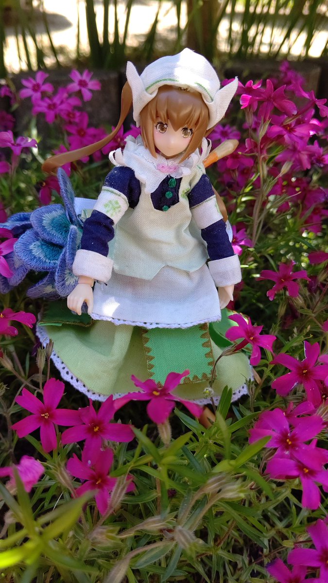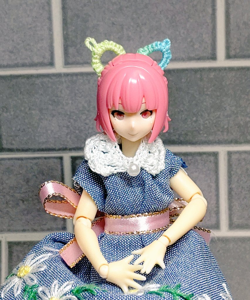 布服、もう一着出来ました♪ 刺繍をしてあります。 ピコニーモmの素体のランサーちゃんには膝下くらいです。 フレズちゃんとランサーちゃんの服の型紙同じなんです。 刺繍と花柄プリント印象ちょっと代わりますよね😆 #フレームアームズ・ガール #メガミデバイス #布服