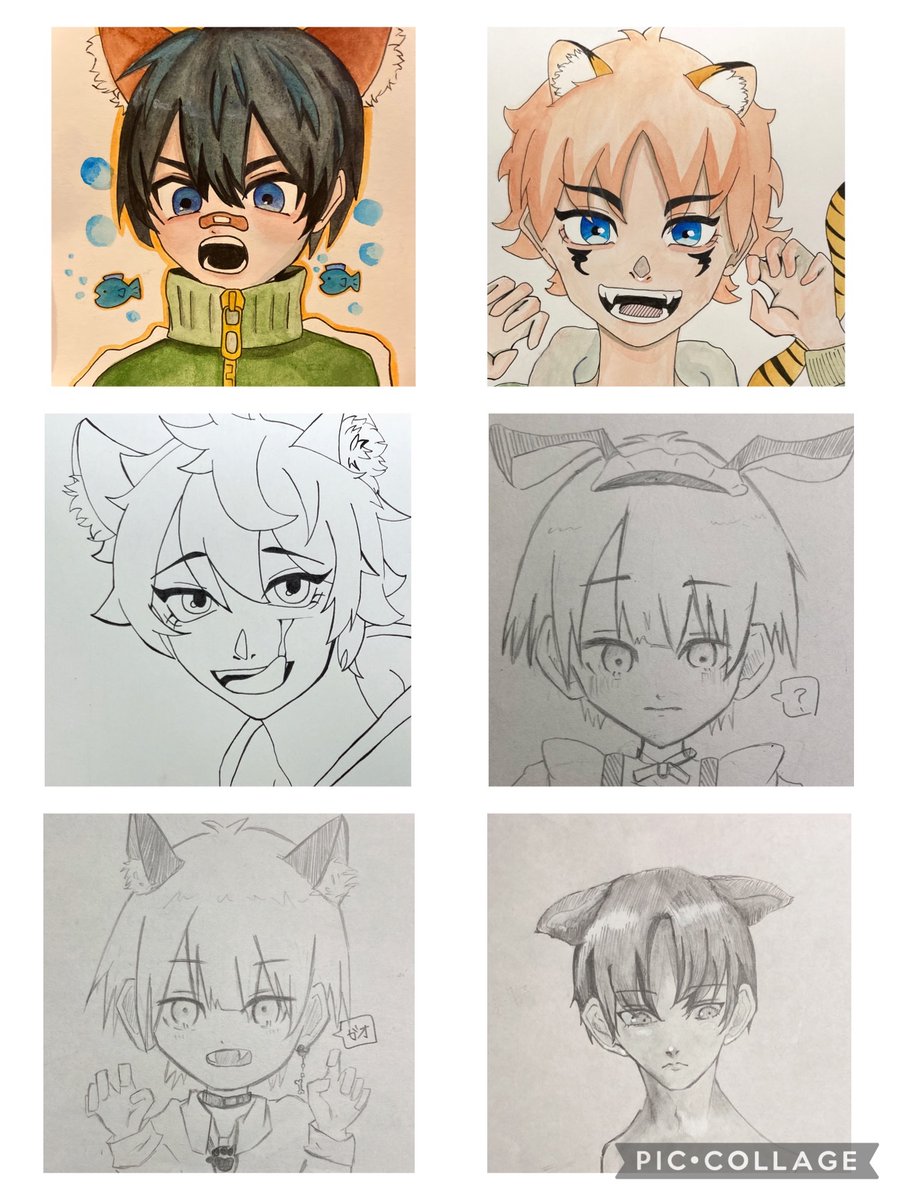 これ、成長してるのかな、、、 画力あげてけるよう頑張る💪 (上の方が新しい絵だよ〜) #フォロバ100 だからフォロー いいね感覚でしくれると嬉し( •̤ᴗ•̤ ) #イラスト #絵描きさんと繫がりたい ⇊過去のケモ耳達 (アナログ絵)