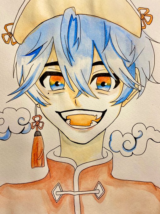 『フォロワーさんの推しを描く』 まむちぃの推しの重雲くんです!!! いつもありがと~(*´︶`*)❤︎ #イラスト #水彩 #原神 #重雲 #絵描きさんと繋がりたい #イラスト好きな人と繋がりたい