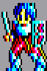 今週の成果。 PC-8801時代の8ビットPC(使える色は黒白黄青赤紫緑水の8色)っぽいメガテン悪魔を描いてみた。 #ドット絵 #メガテン