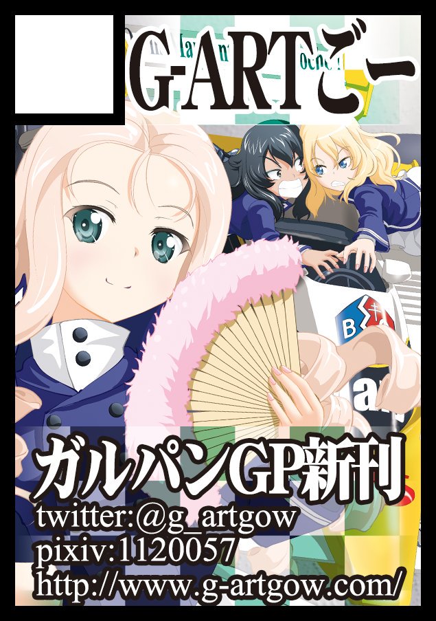 サークルG-ARTごー、コミケポスターです!なんだか台風直撃っぽいですが……荷物には二重に防水対策しておきました。新刊が会場搬入なので天気にかかわらず行くのは確定でござんす(でないと置きっぱになってしまう)私も皆様も全員でご安全に #ガルパンGP webcatalog-free.circle.ms/Circle/16213549 #C100WebCatalog
