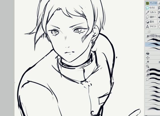 お兄さんの七三を崩したらどうなるのか描いてみたかったけど 結局そんないつもと変わらないですね(当社比)