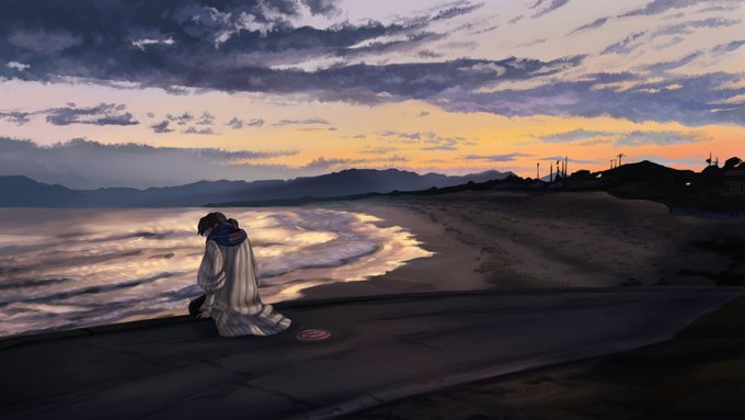 2 4 もうすぐ夜明け前sea2 京都府久美浜 #イラスト #背景 #海 #日の出 #夜明け 23/02/28 17:52