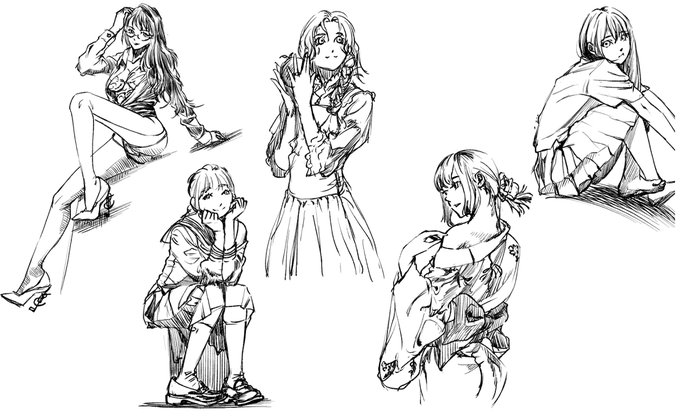 とれ36 #オリジナル #練習 #トレーニング #モノクロ #クロッキー #ポーズ集 #スケッチ #座り #鍛錬 #おしゃれさん pixiv.net/artworks/10694…