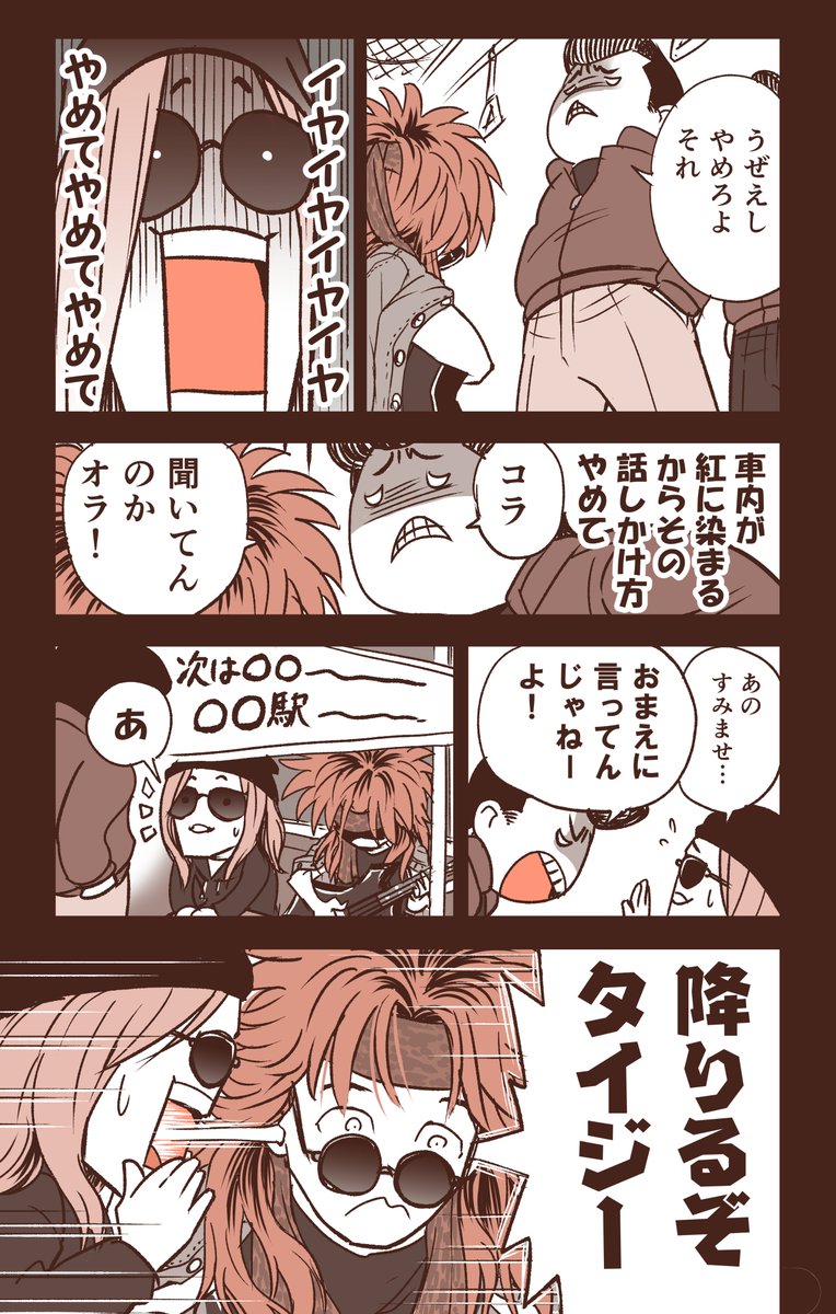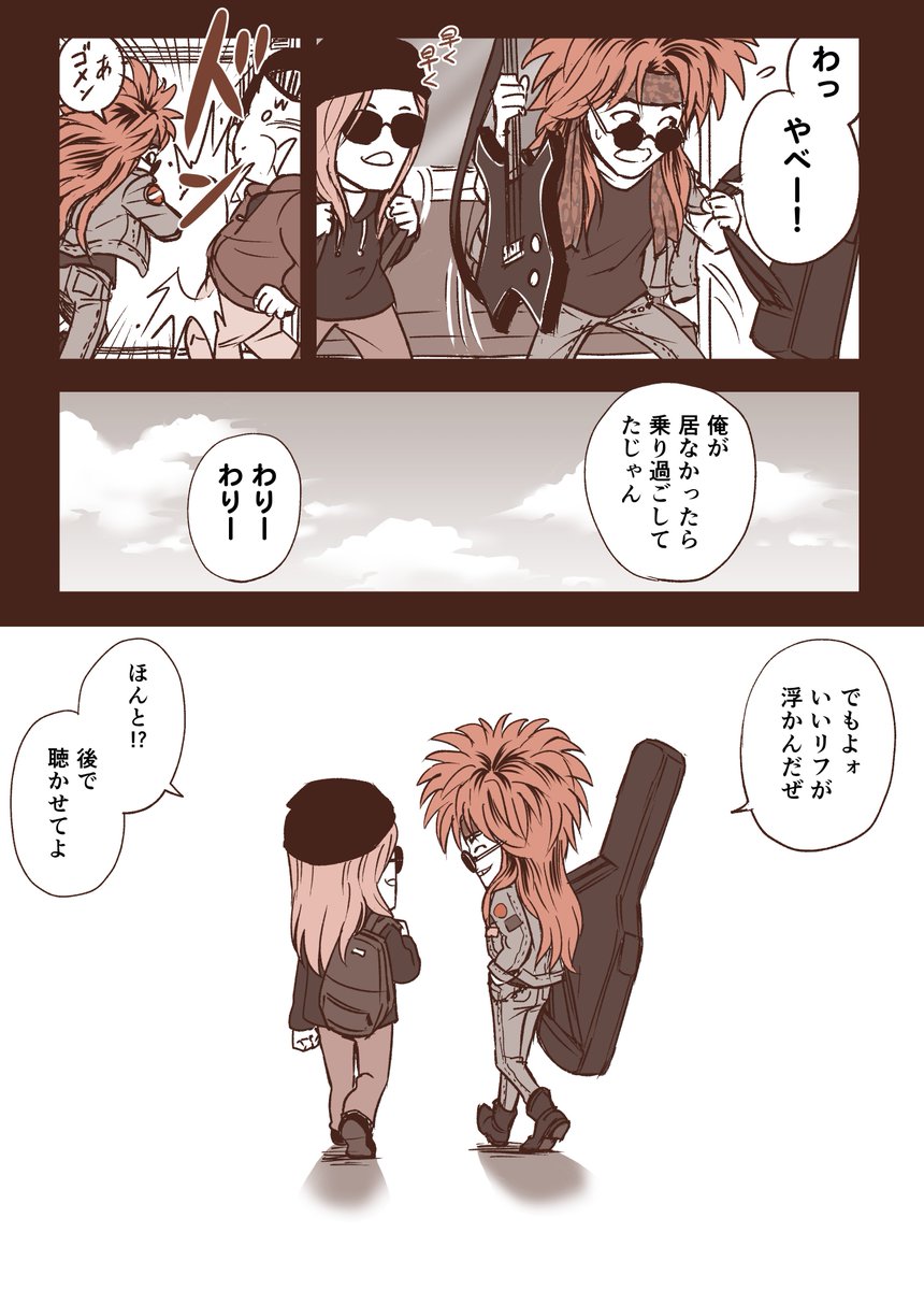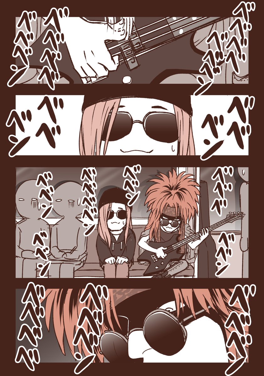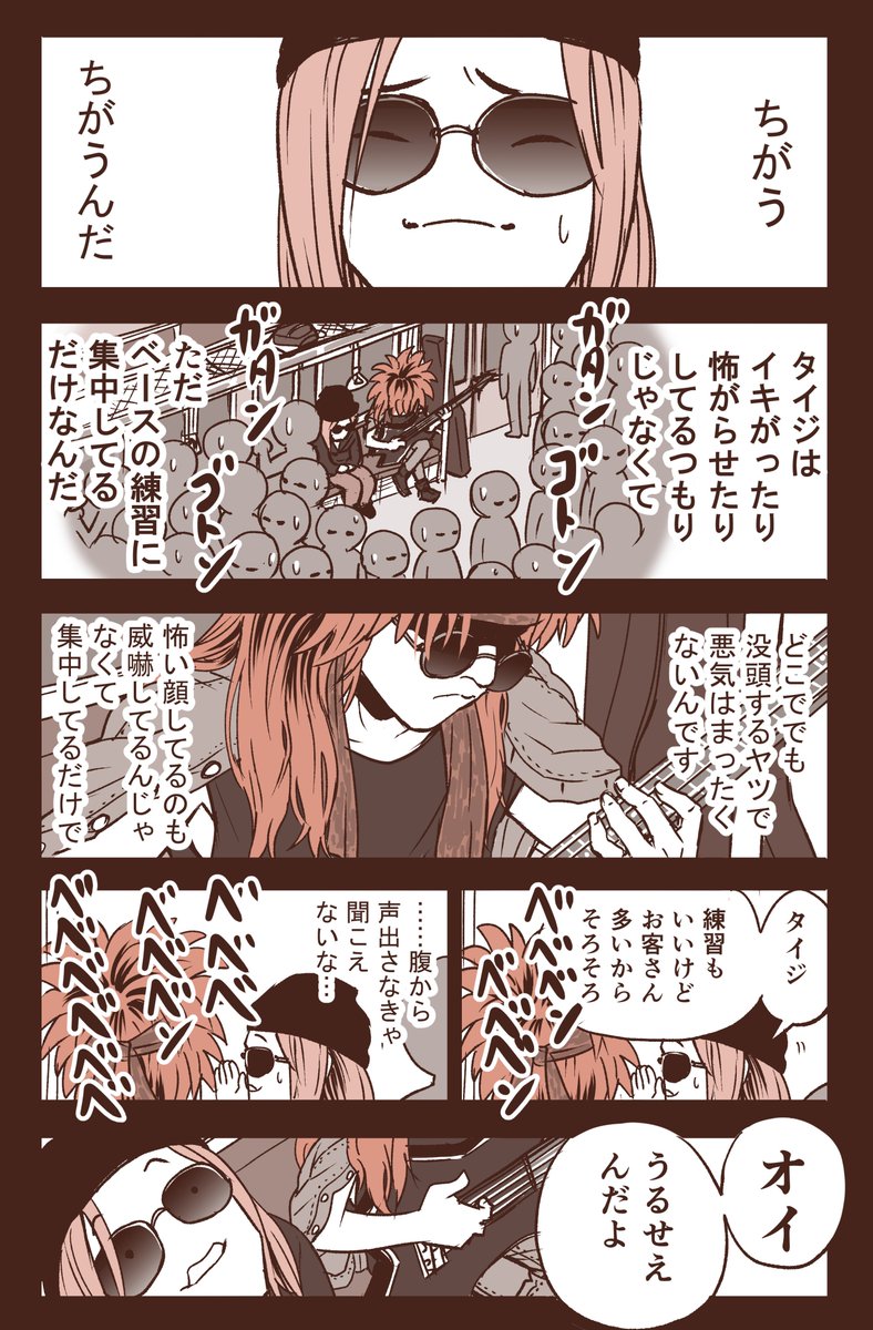575 1752 TAIJIが地下鉄車内でもベースを弾いていたという話をとしがしていたとフォロワさんから聞いてついらくがきまんがを 18/11/22 22:15