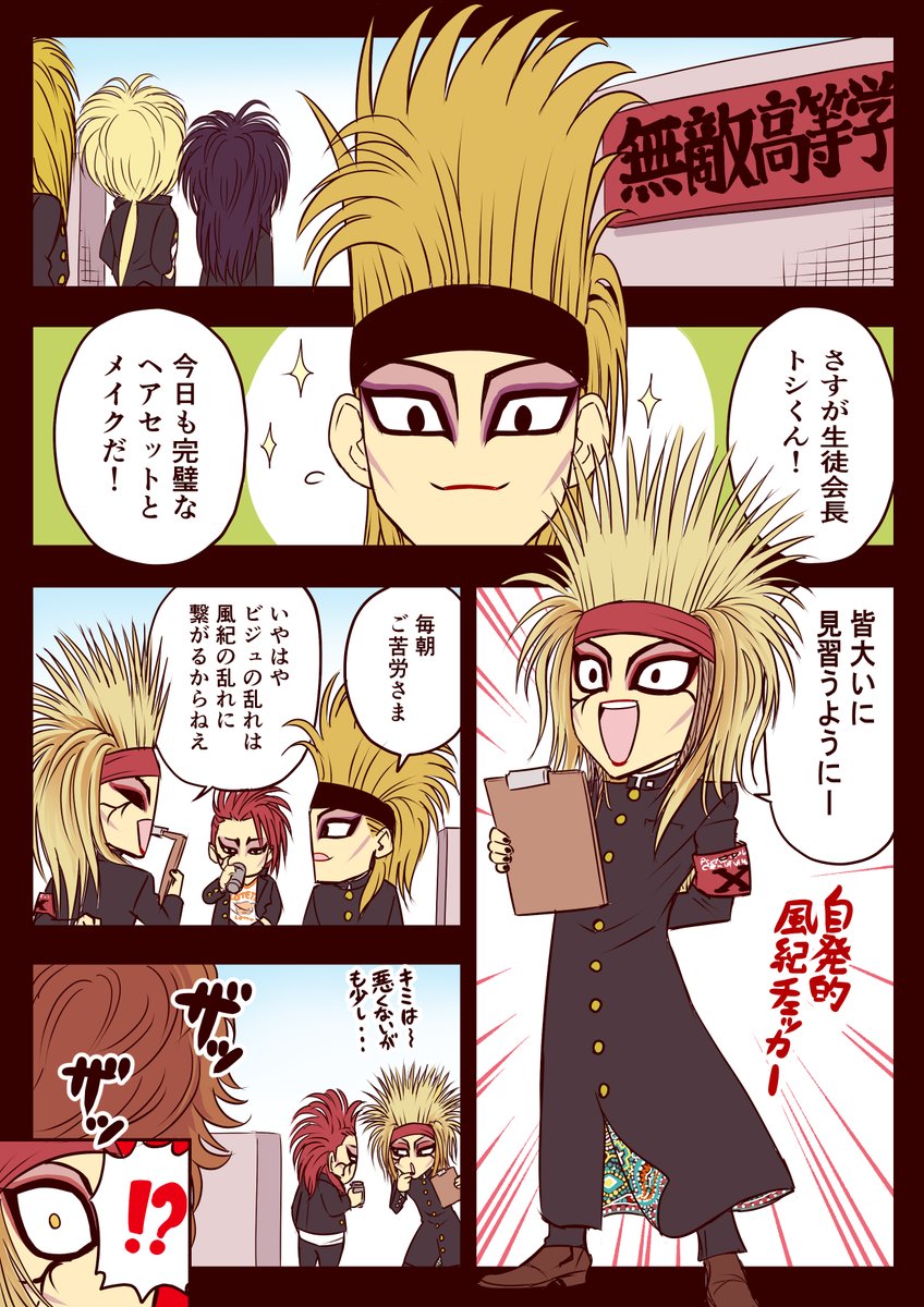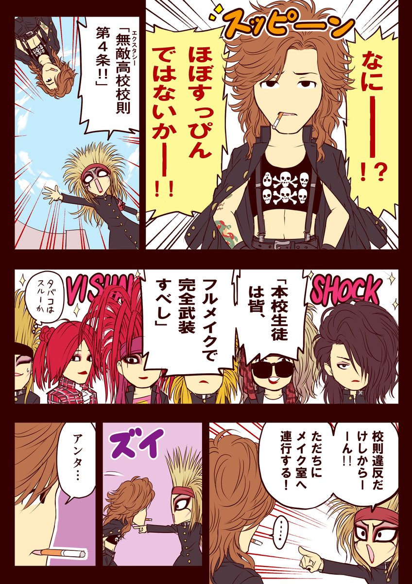 私立エクスタシー高校の名物・大魔神五人組(留年生約一名) 表番長YOSHIKI 一年にして喧嘩番長TAIJI 全国生徒( )酒飲み番付一位PATA 生徒会長TOSHI 裏番長HIDE