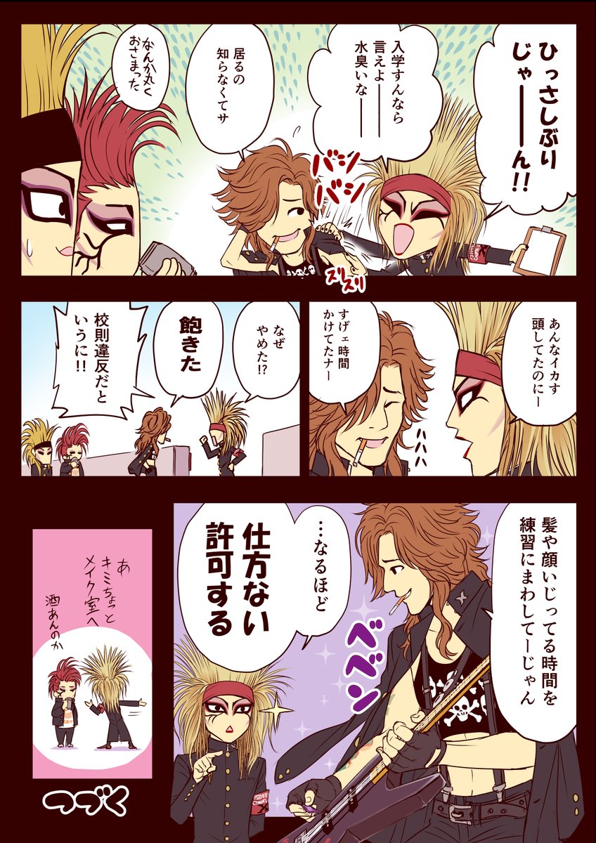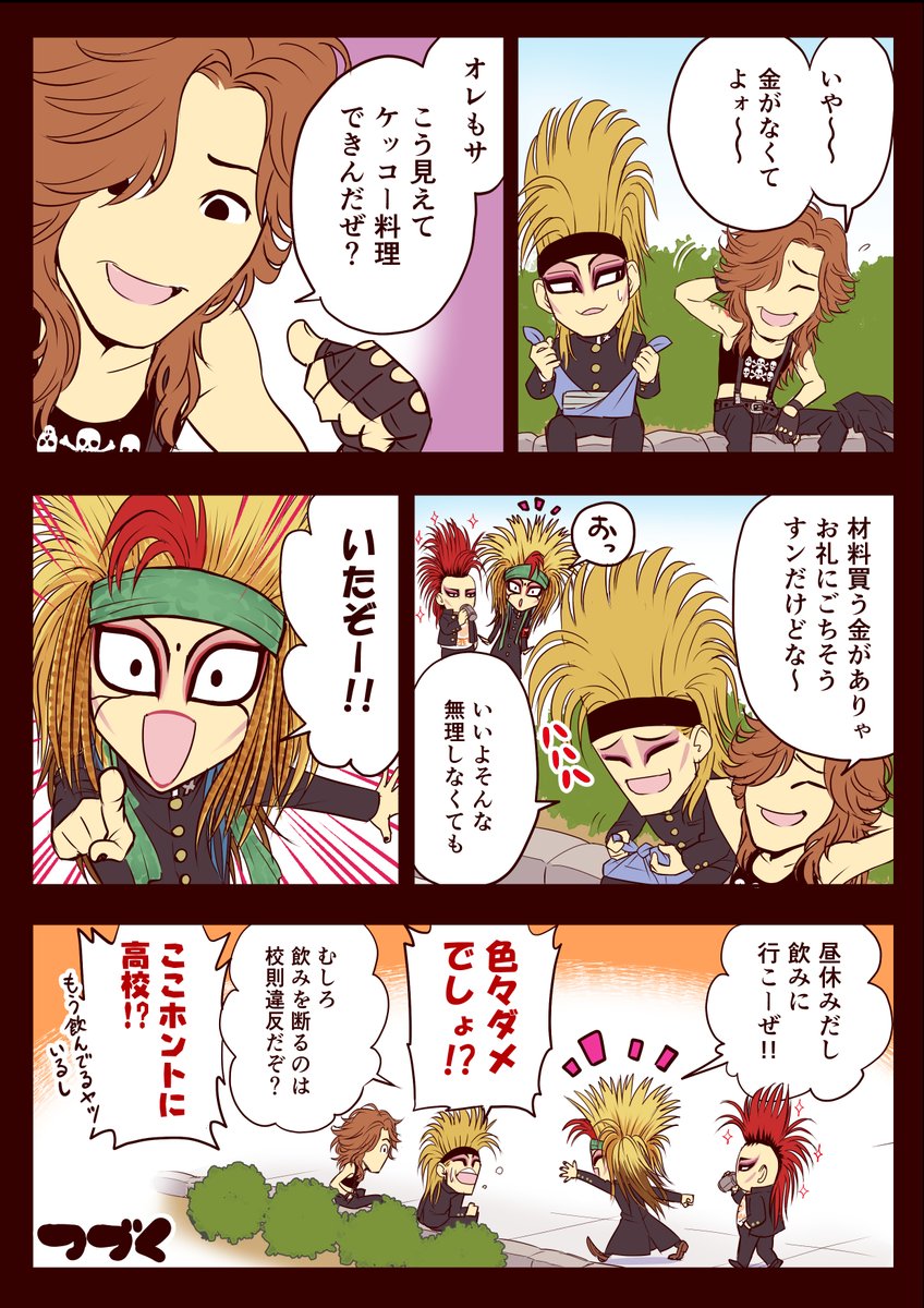291 1069 私立エクスタシー高校の名物・大魔神五人組(留年生約一名) 表番長YOSHIKI 一年にして喧嘩番長TAIJI 全国生徒( )酒飲み番付一位PATA 生徒会長TOSHI 裏番長HIDE 18/12/06 23:26