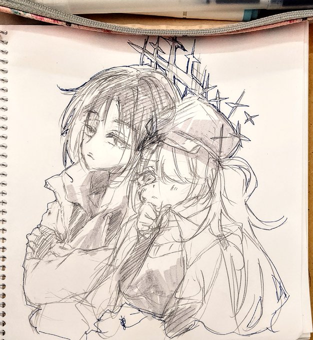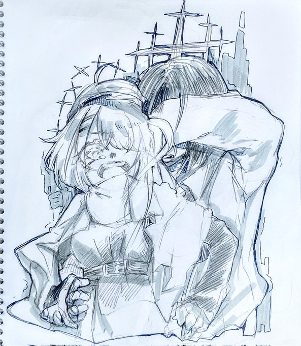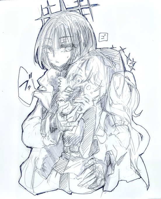 11 15 【rkgk:ブルアカ】 💚「ミサキちゃ〜ん、前見えない…」 💛「見る必要ないから、見なくていいよ」 💚「????」 (不愉快なものを見せられて不機嫌になりつつそれを見せないミサキと見せて貰えないヒヨリ) (絶対に見せたくないマンなミサキと絶対に見せて貰えないヒヨリ) 23/03/26 21:59