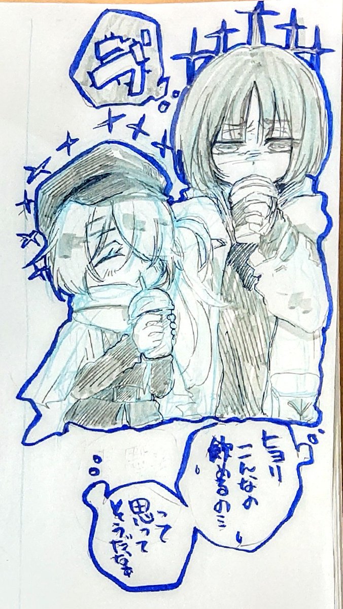 6 14 【rkgk:ブルアカ】 💚「あぅ…暑いのでアイス半分こしましょ〜」 💛「…ありがと」 (アツイと思ってても離れてとは言わないミサキと、無意識に体温低いミサキにくっ付くヒヨリはいるはず!) (そして、暑そうだからって帽子を被せてあげるヒヨリは絶対にいる) 23/03/07 12:51