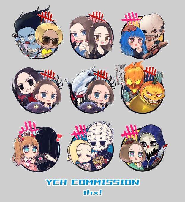 #YCH #DeadbyDaylight #DbDfanart ありがとうございました☺️ 頭身やタッチにバラつきあったりアイコンに使いづらいという課題も多いんですけど楽しかったです~~~!