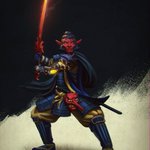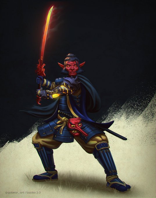 Sojobo, my Curse Of Strahd character after losing an arm and then gaining a demonic metal arm and a flaming fire sword. #RPG #dndart #DnD #curseofstrahd #characterdesign