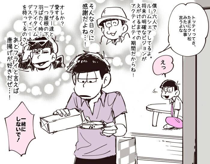 6周年おめでたい🎉 昔、ワンドロのために5分で作ったネタだけど好きだから再掲( ᵒ̴̶̷̤⌔ᵒ̴̶̷̤ ) 6つ子達のわちゃわちゃずっと大好き永遠にわちゃわちゃしててね #おそ松6周年だって早いね