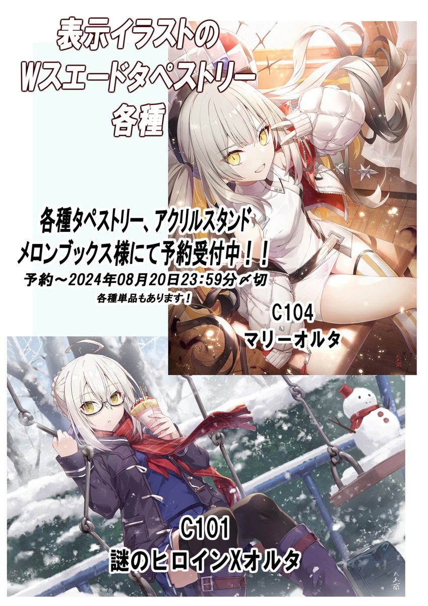 C104新刊&新刊セットの予約が始まりました! よろしくお願いします!! C104新刊セット 🍈:melonbooks.co.jp/detail/detail.… C104新刊 🍈:melonbooks.co.jp/detail/detail.… 🐯:あります #FGO #C104