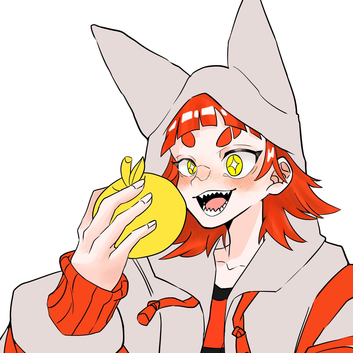 鈍色さん(@gudon__san)の代理の子を勝手ながら描いてみましたー!! ✨ ゴールドリンゴの描きこみがなくて、ミカンに見えるのはすみません🙇♀️ いつも陰ながら応援してます~(o゜▽゜)o💖 #鈍色さんファンアート