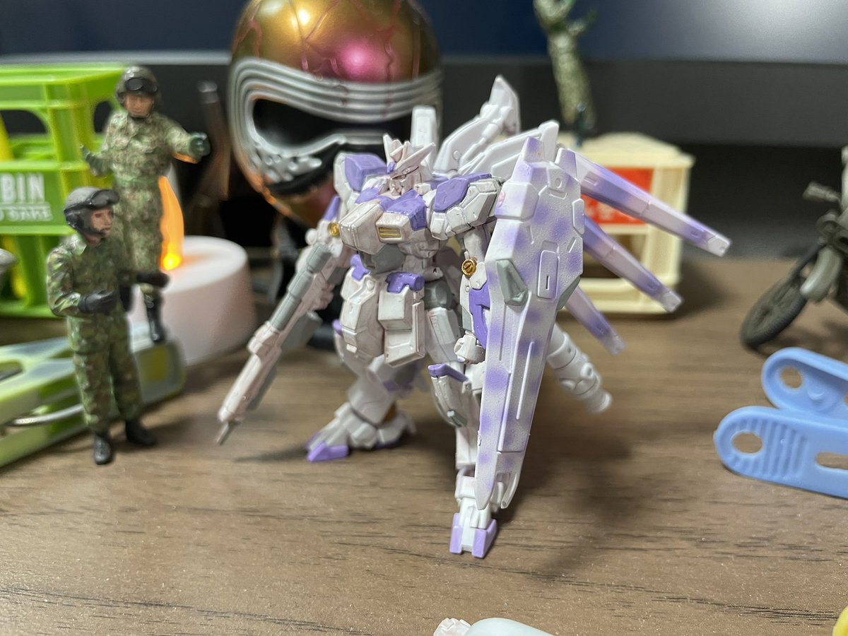 #ガンダムアーティファクト のハイヌュー。 紫、基本は #ファレホ のブルーバイオレットを筆塗り、ボケてるところは #ガイア のベランダーをエアブラシ。 やっぱ、エアブラシは ラッカーの勝手がいい。 #ガンプラ好きと繋がりたい #ガンプラの画像貼るとRTされると聞いて