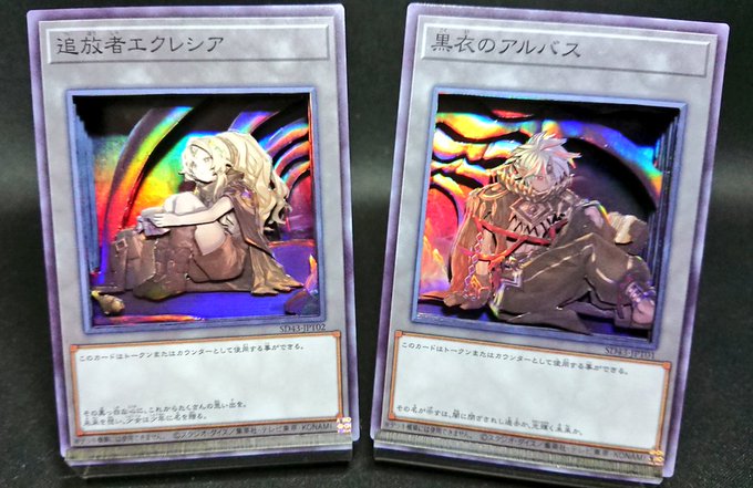 珍しくヴァンガ、ポケカ以外で 頼まれてた2つ、やっと完成しました 遊戯王から 『追放者エクレシア』 『黒衣のアルバス』 トークン2種類です♪ #シャドーボックス #新作シャドーボックス #遊戯王