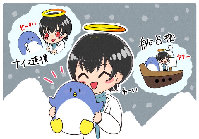 なつめ先生& たけぉさん 傀儡勝利おめでとう🎉🎉🎉 ナイス連携でした〜👼🐧 #なつめせんせ絵 #たけぉぇかき