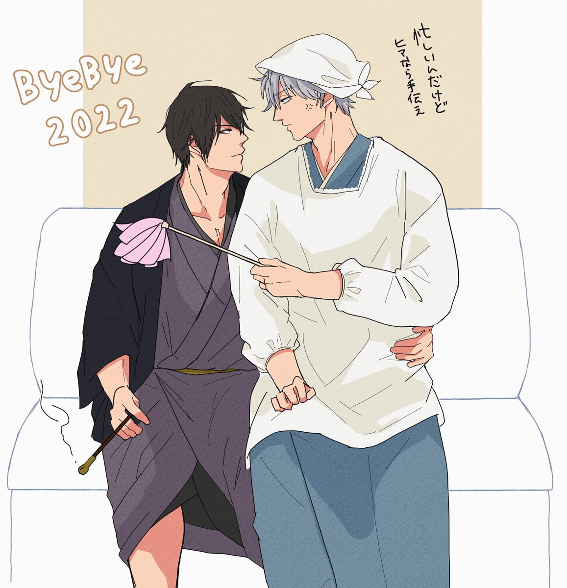 24 220 隠居。銀時が割烹着を出してきたら年末だなーって思う高杉。描き納め〜 22/12/31 15:29