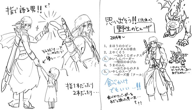 #ヒュザソミャアンソロ に向けて、急ぎヒューザとソーミャ関係のイベントシーンなどを見直している。からのらくがき(続くとおもう) 野生のヒューザからわかるヒューザの性格……おま…っっ😭 ソーミャちゃんの他に各地で幼女囲ったりしてないやろなぁああ?!!←暴言 チビっこに優しいな、ヒューザ…