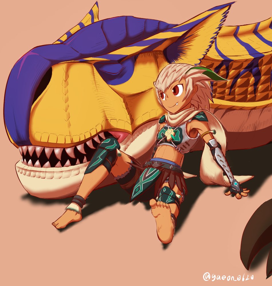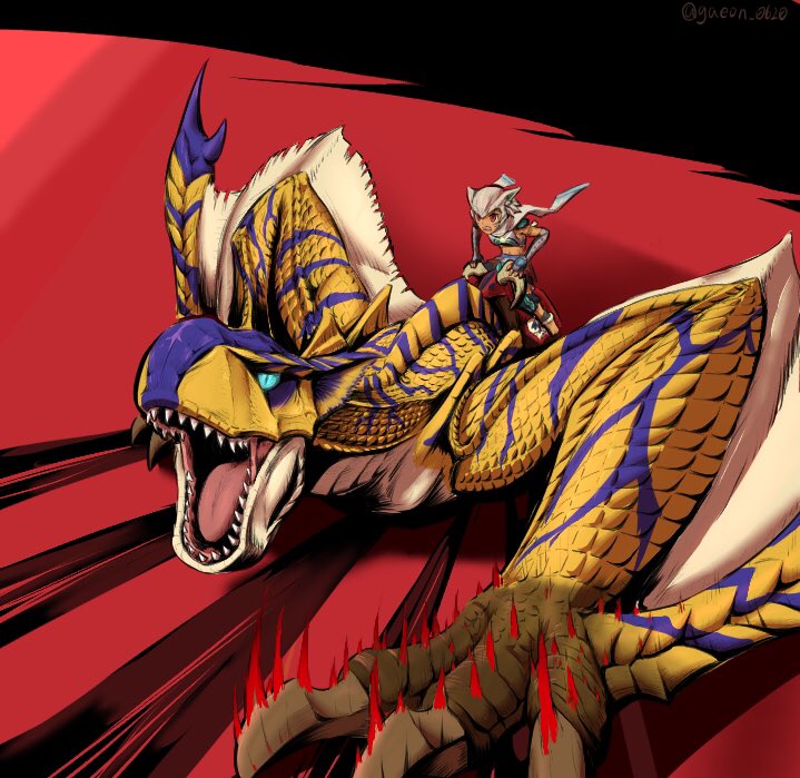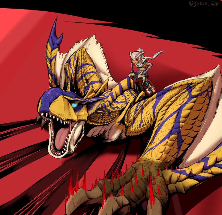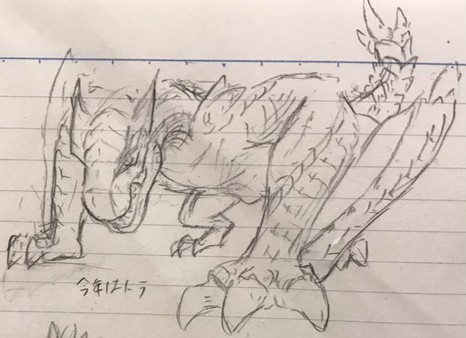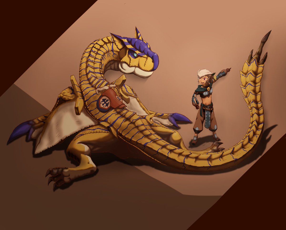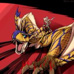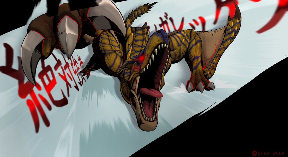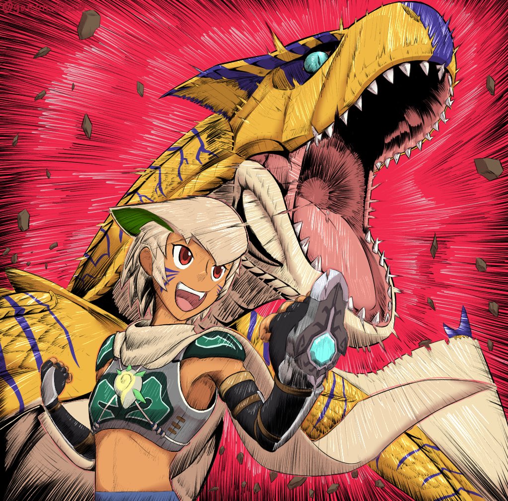 #モンハンストーリーズ2 #モンハン夏のイラコン ストーリーズ2で自分が序盤からクリア後までずっとお世話になったティガレックスを描きました。 当たれば会心の博打技であるヘビースピアーには何度も助けられたのを覚えてます。