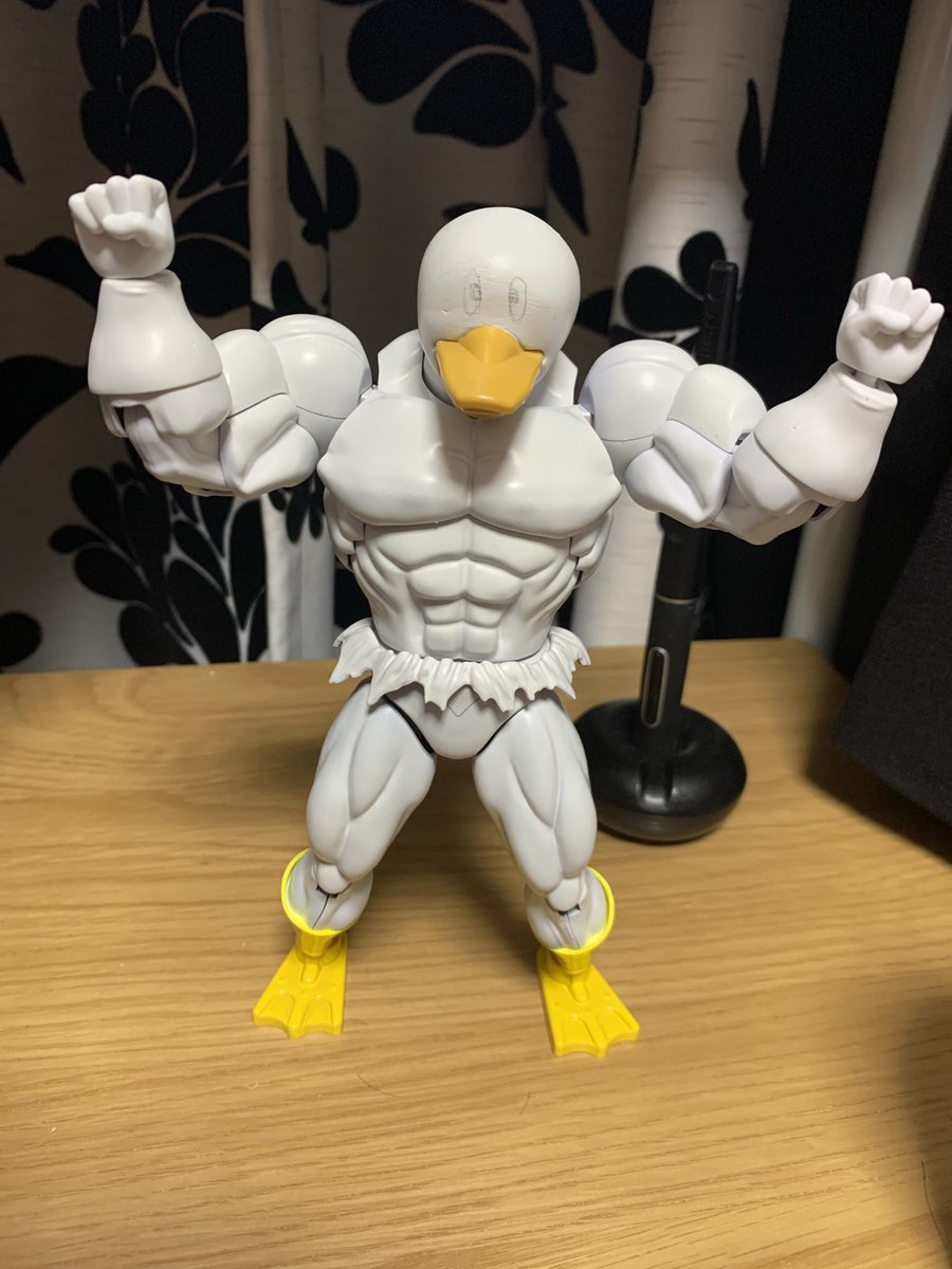 スバルちゃんの歌配信聴きながらマッスルスバルドダック作ってた まだ作成途中だけどモチベ維持の為アップ イメージは 「驚いたねぇ……奇しくも同じ構えだ……」 最初は上半身が倍ぐらいデカかった 後は、顔と帽子を被せないと #プロテインザスバル