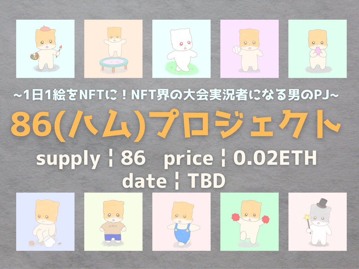 86作品が決まりもうすぐスタート! 7月には大会実況も決まり 成功に向けて進んできいます🔥 〜86(ハム)プロジェクトって〜 現在1日1絵を285日継続しておりそのイラストを86枚抜粋しNFT化して発売します。… twitter.com/i/web/status/1…