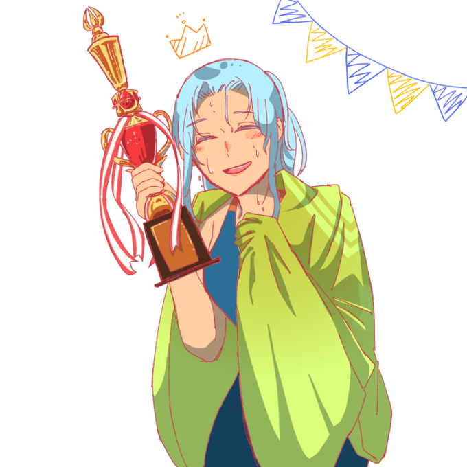 ひと泳ぎしてきたおよぎさん トロフィー曲がってんね #しんけんイラスト