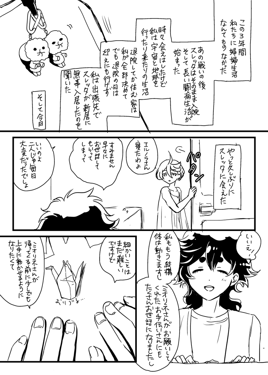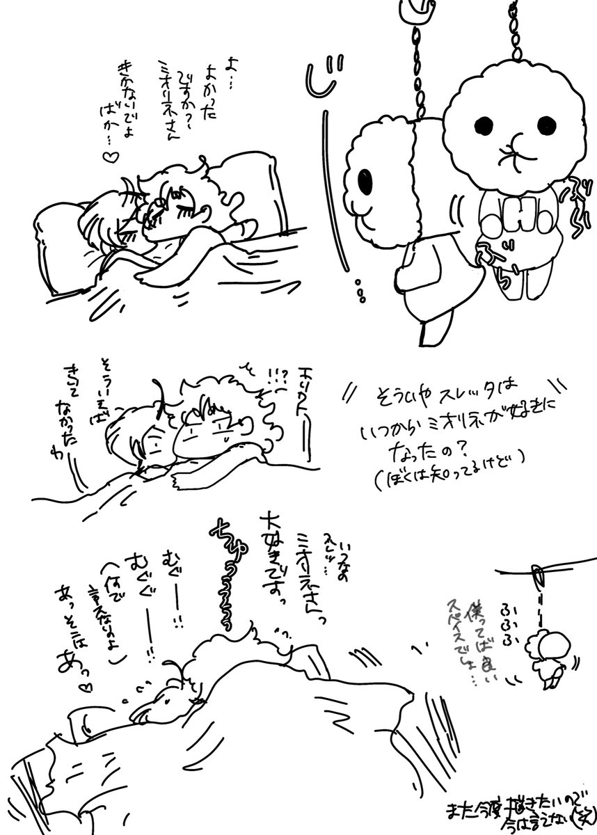 8話を見た限りではミオリネルームに同棲していますね…そして多分ベッドはひとつしかありませんね…? ……そういうことですよね!!? (もう衣類など持ち込んでいるレベルと思われ)(でも借りるのもいい)(なぜか『足りなく』なった時は借りればいい) #水星の魔女 #G_Witch #gundamwitchfrommercury