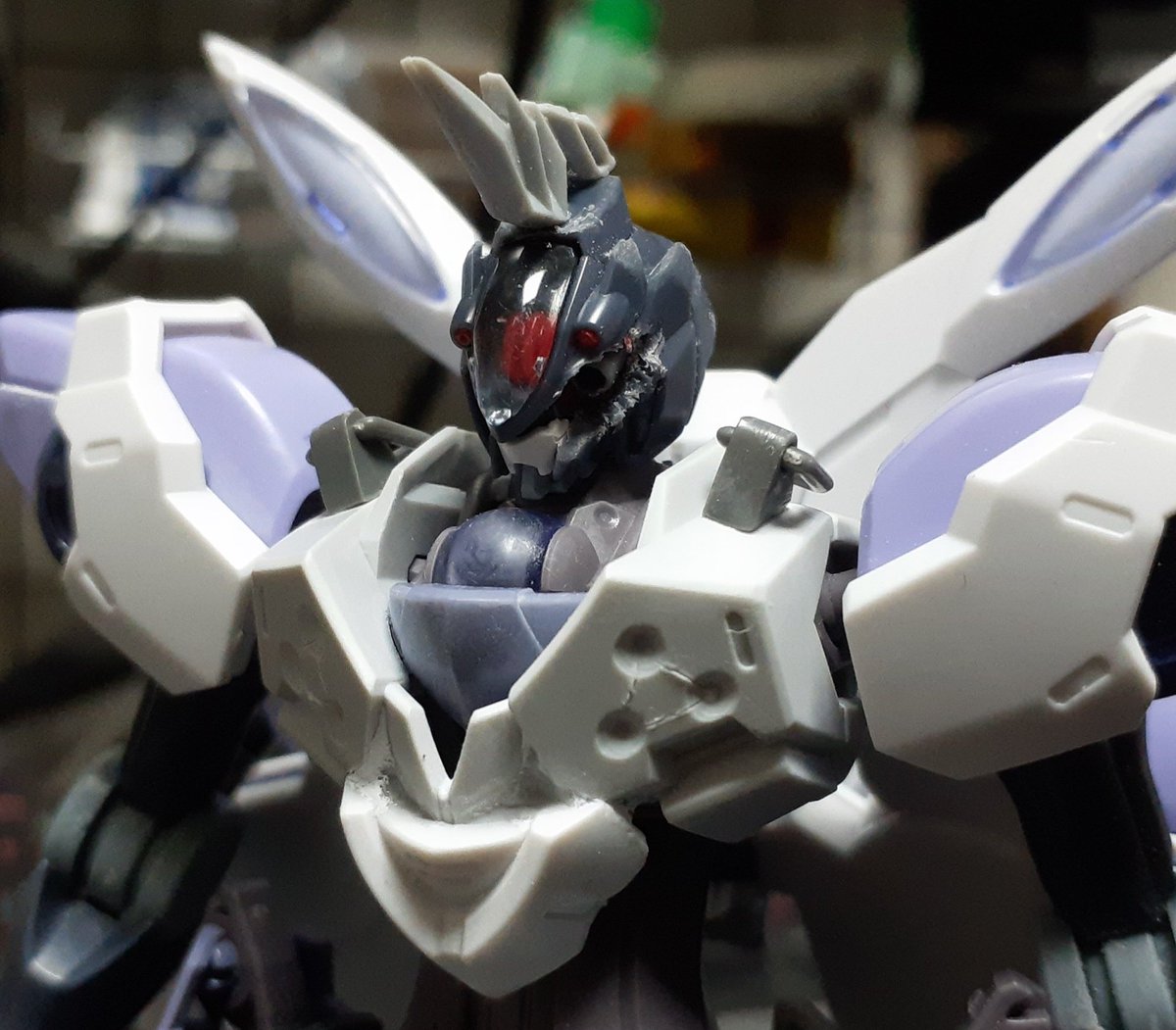 ベギルベウを改造中。 頭部は思い切ってファラクトのを改造して、「片目を抉られて鹵獲され、代わりのカメラを移植された」という設定にしました。 あと全体的に悪い感じにしたいけどアイデアがない。アイデアくれさい。 #ガンプラ #水星の魔女Noガンダム祭