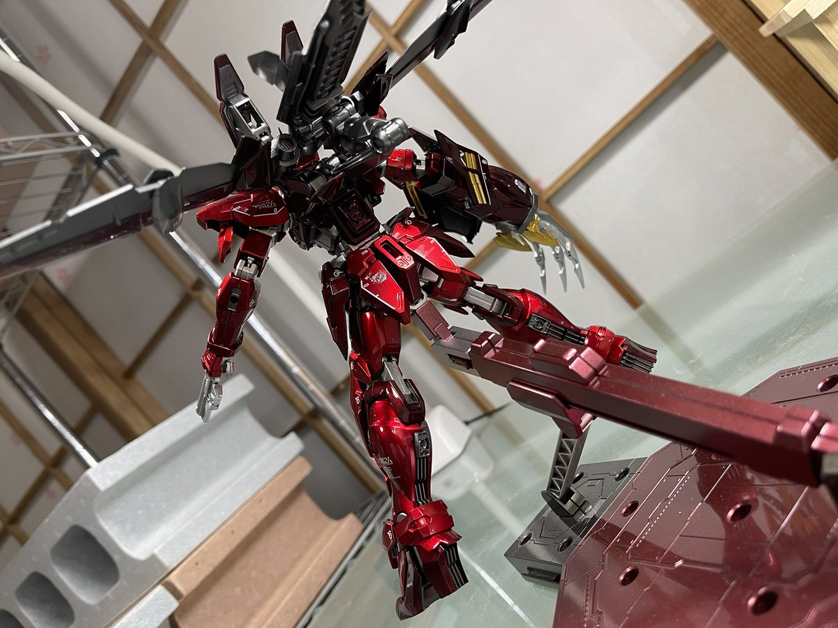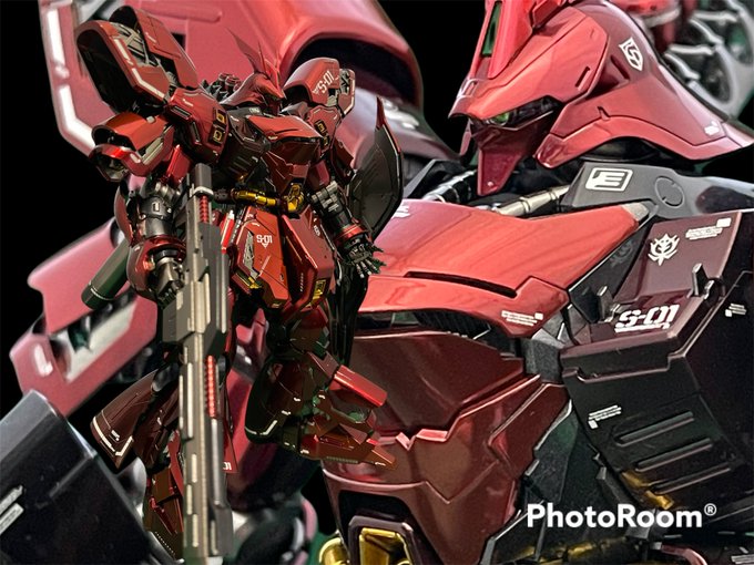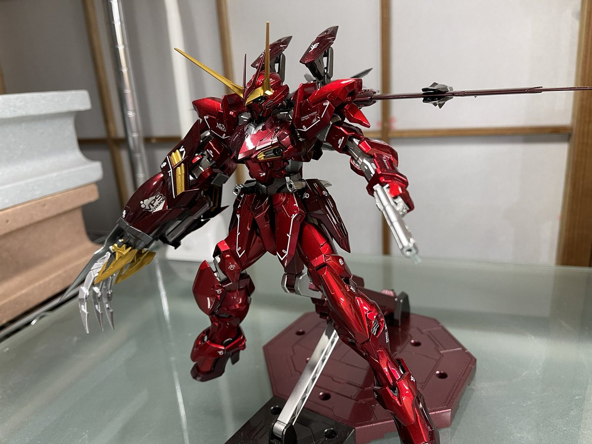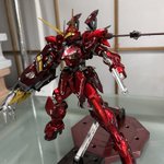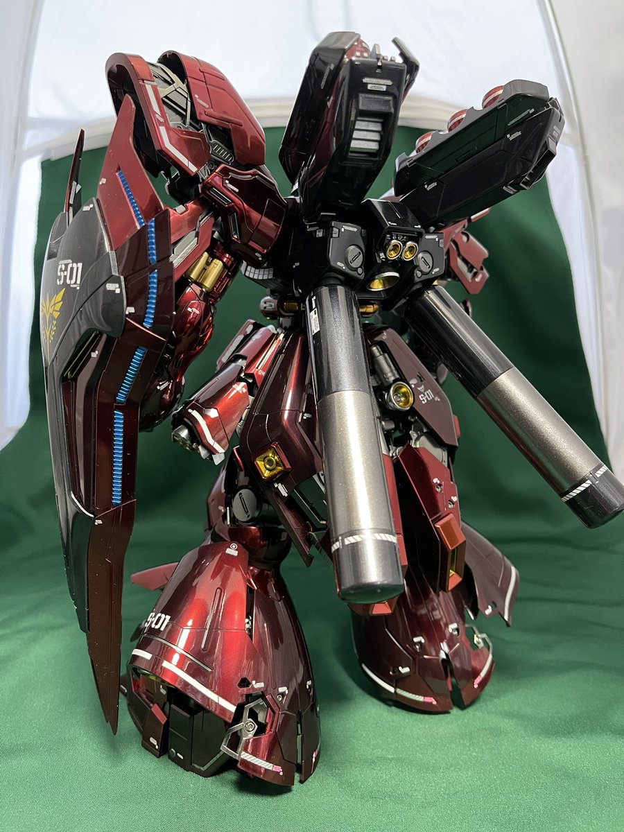 以前作ったシリーズその6 MGシナンジュ キャンディ塗装はじめて間がない頃に製作しました😗 この頃は磨いたりしてなかったのでクリアーの波が見えます😵 デカールもクリアーレッドが侵食してますよ🌀 日々自分好みの完成度に近づければイイですねぇ👍✨ #ガンプラの画像を貼るとRTされると聞いて